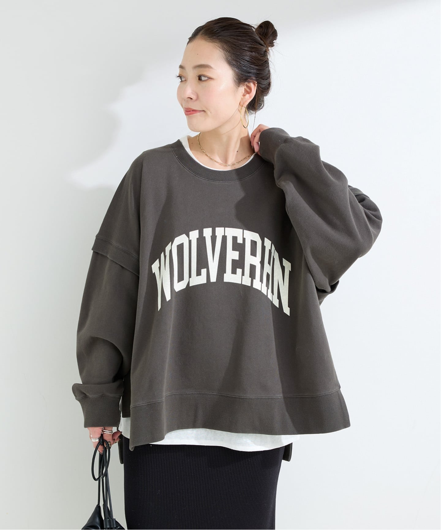 一枚でレイヤード風に見える、忙しい日こそ頼れるスウェット。