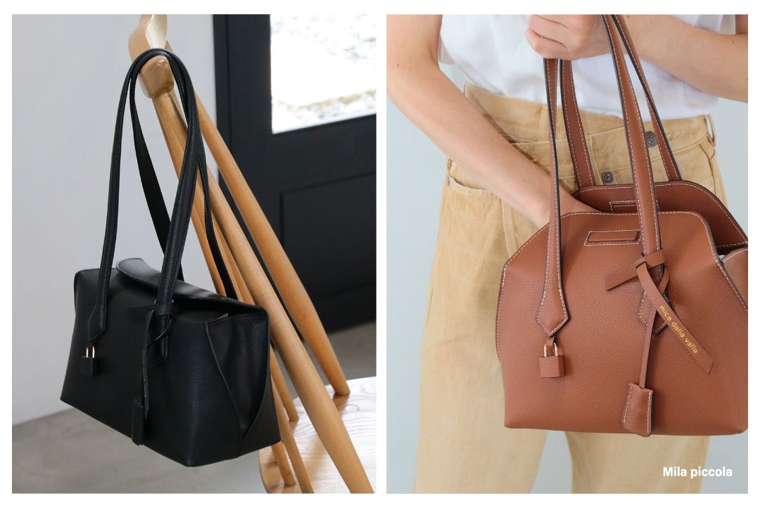 マグネット式の大きな開閉口が特徴の肩がけバッグ「Mila poccola」。長財布や500mlのペットボトルが横向きに入ります。内側にはポケットが2つ、背側にもオープンポケットが1つ付いており収納力も抜群です◎