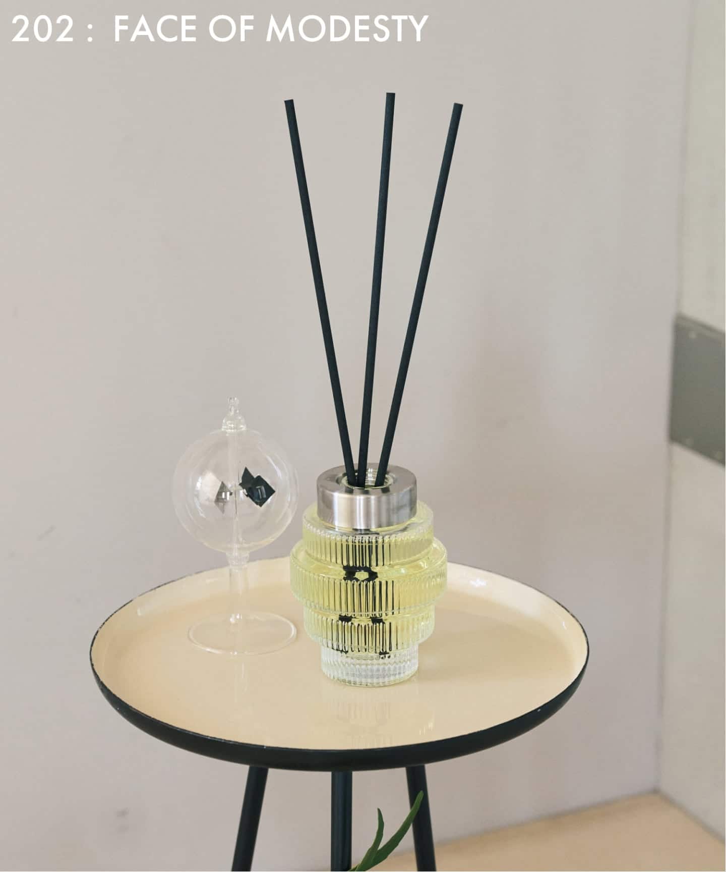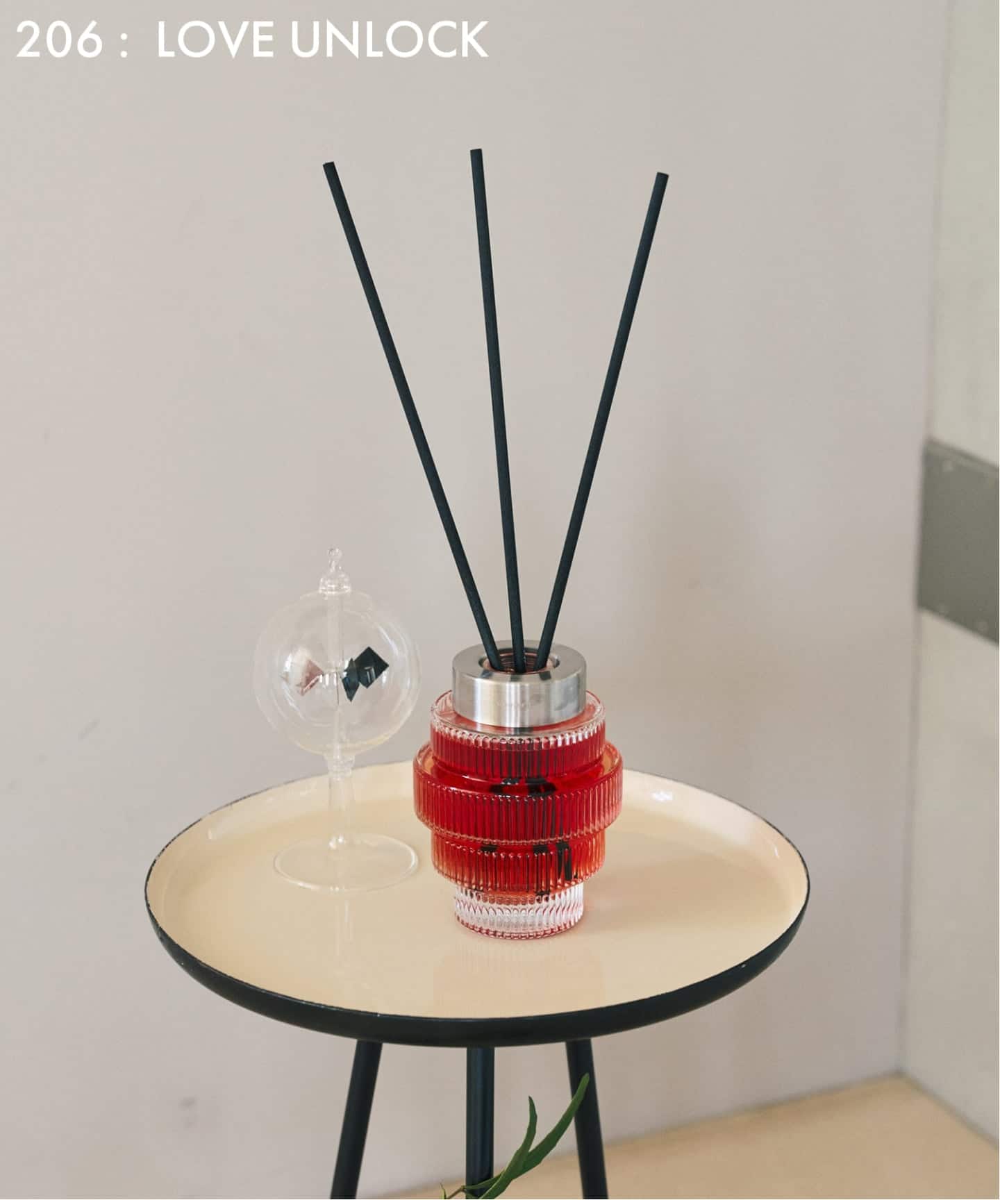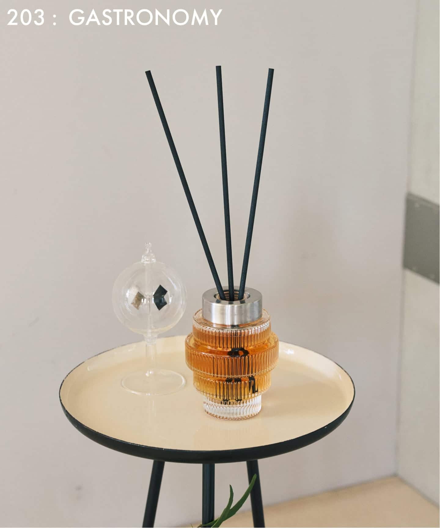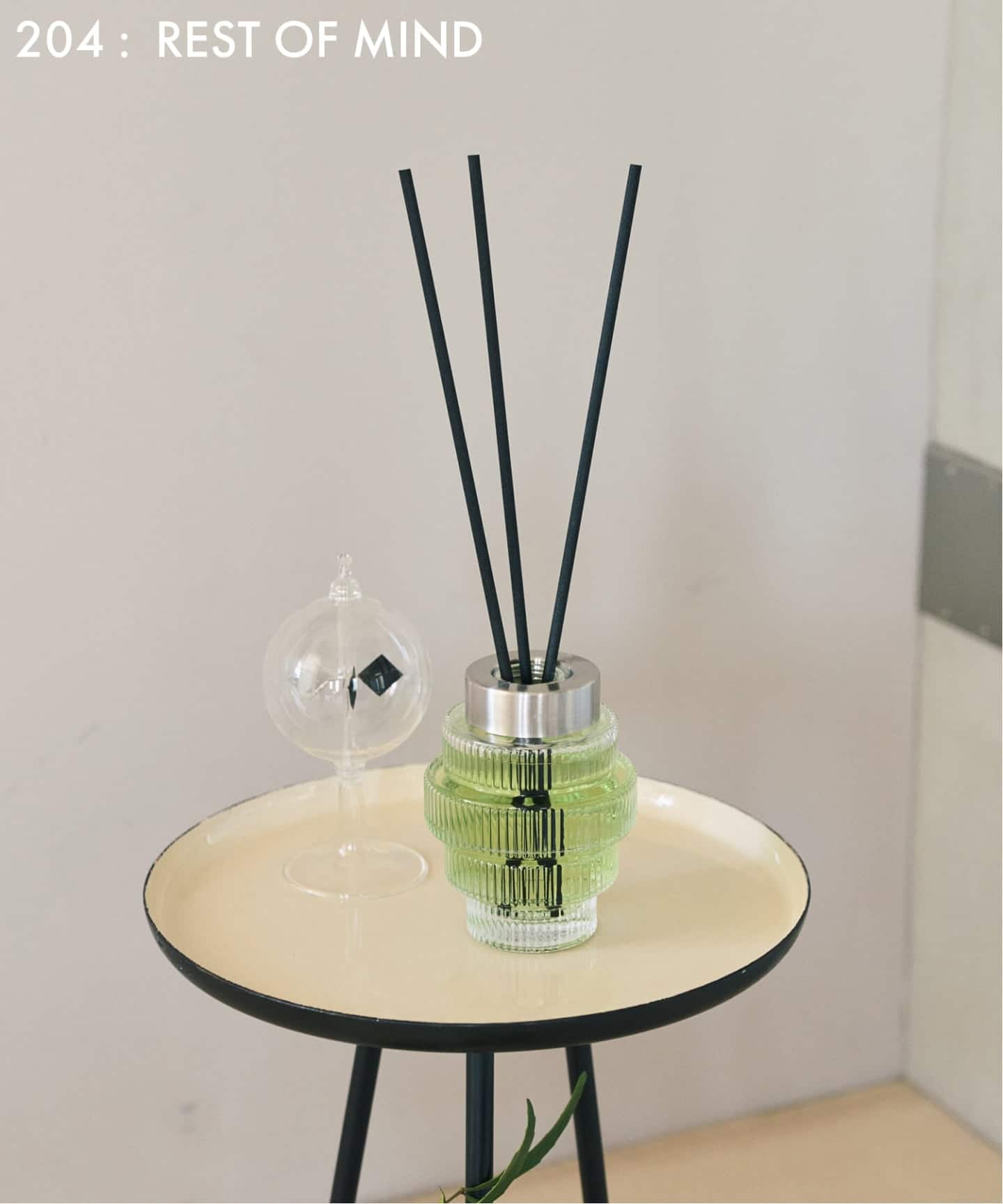 トップ・ミドル・ラストと、時間とともに香りが美しく移ろい、差し込む光や照明に呼応して、液体の色影が揺らぎ、空間に奥行きを添えます。