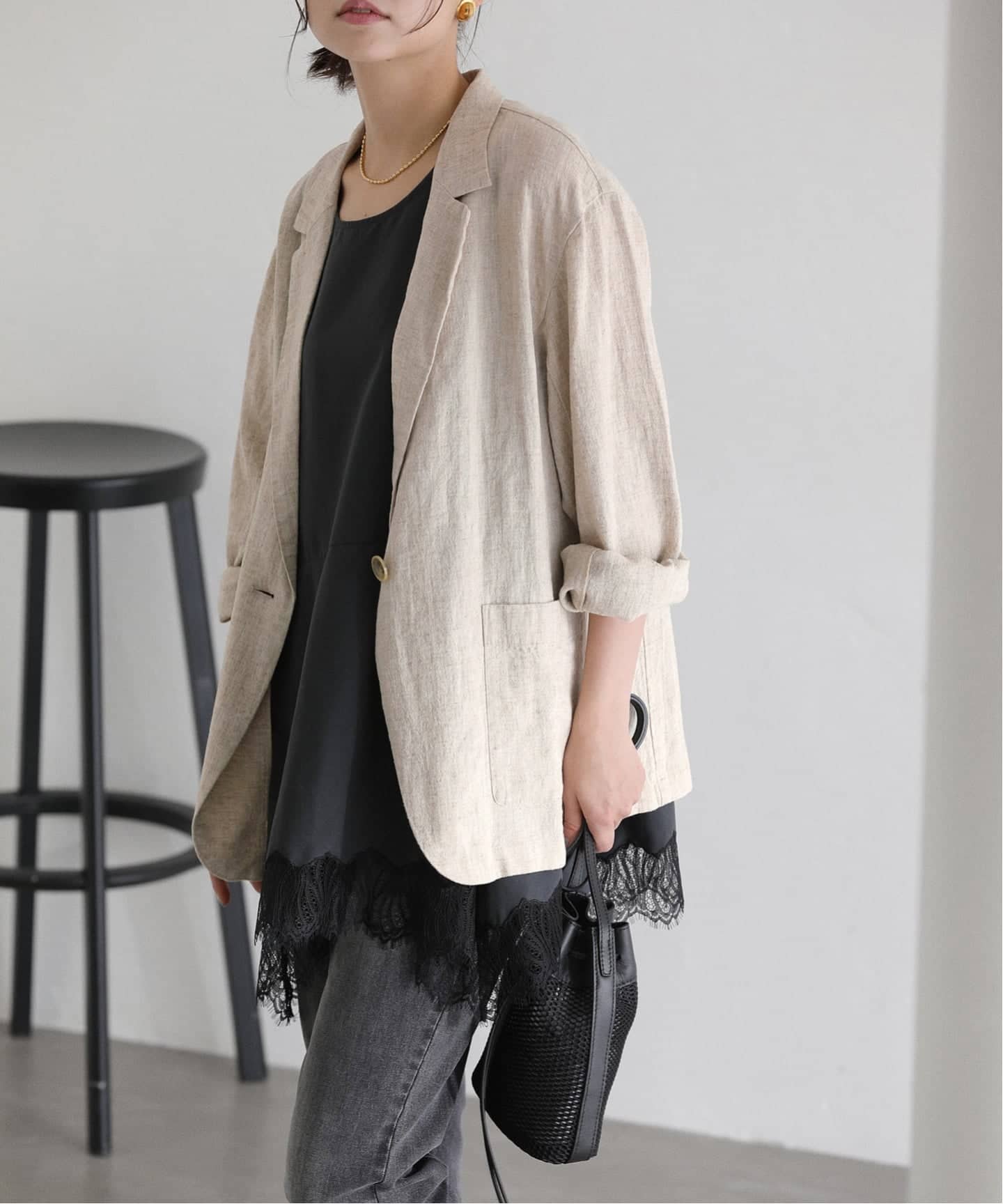 ナチュラルな風合いが魅力のリネン混ジャケット。