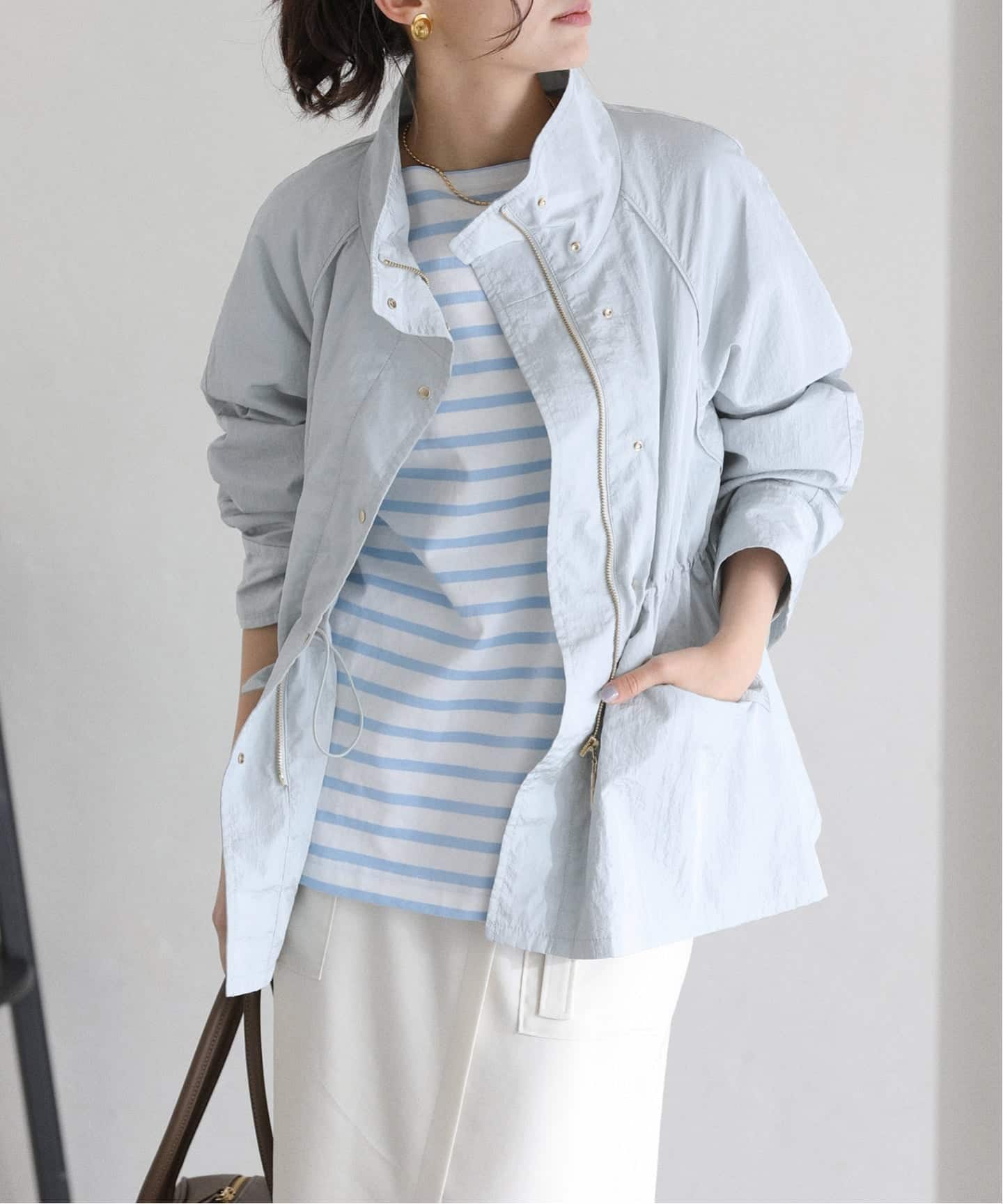 程よい艶とハリ感のあるナイロン素材を使用し、カジュアルになりすぎず大人っぽく着られる一枚です。