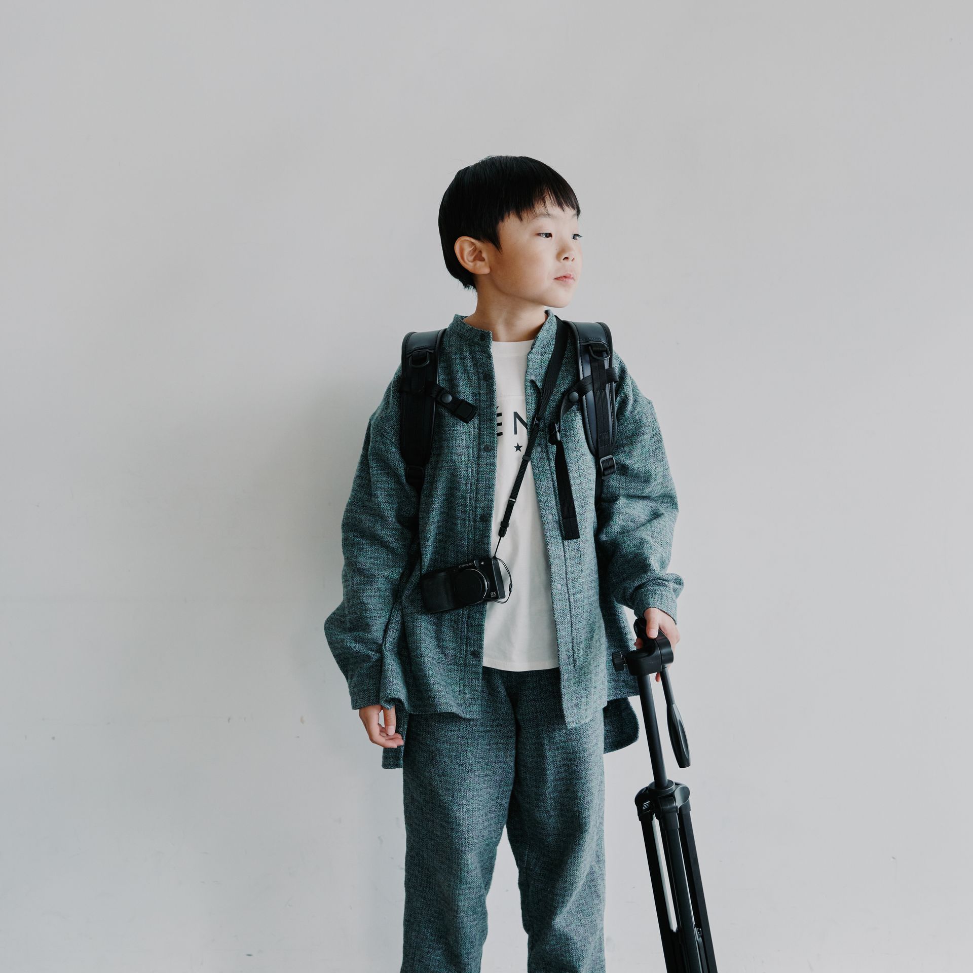 ウールの様な風合いのコットンツイードを使用したバンドカラーシャツ。やや厚手で起毛したコットン素材を使用することでウールライクなルックスに落とし込んでいます。