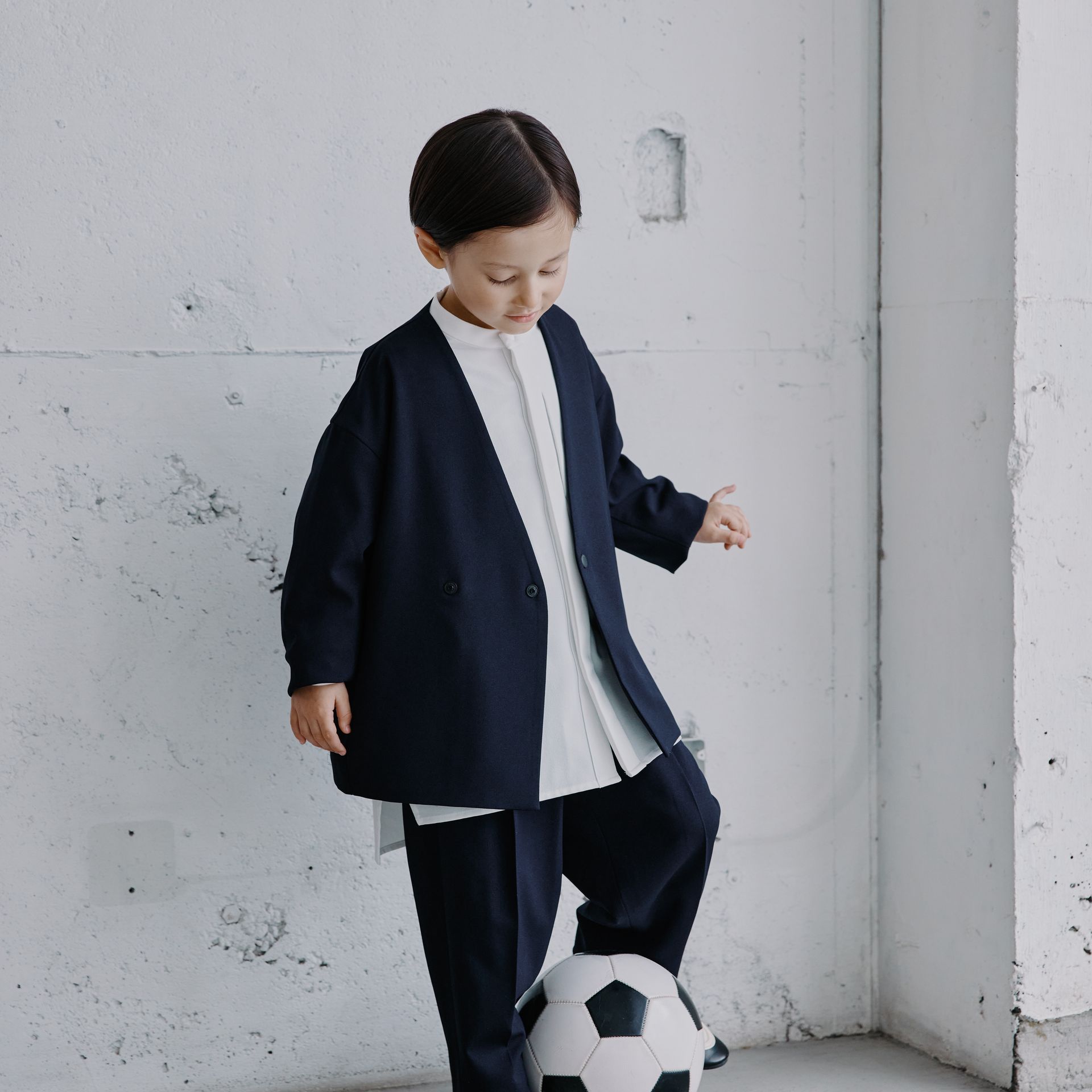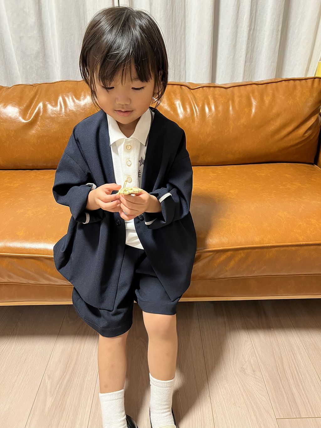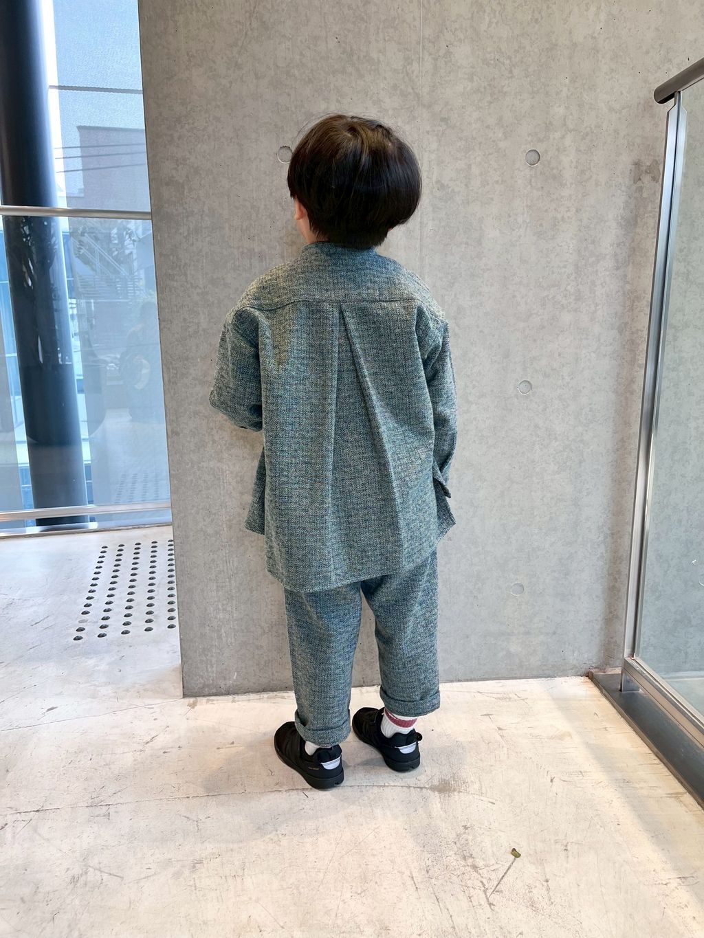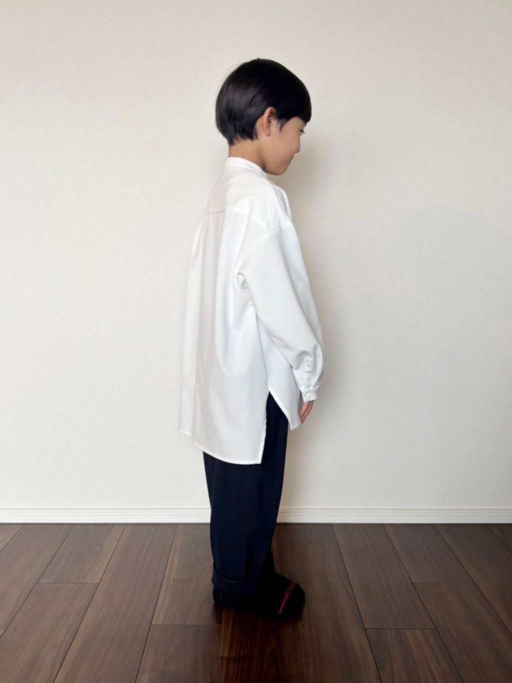 ゆったりなサイズ感とシルエットなので110sizeがいい感じでした。生地がしっかりしているので、シャツは軽めのアウターにも◎セットアップできるのがやっぱりやっぱり可愛いです♡