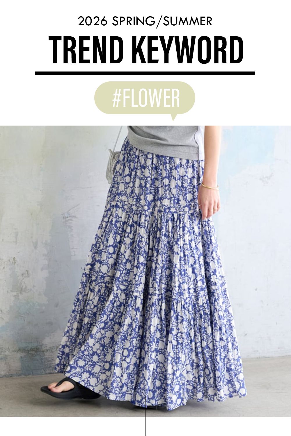 《WEB限定追加 / 新色》コットンボイルクリンクルティアードスカート(柄)