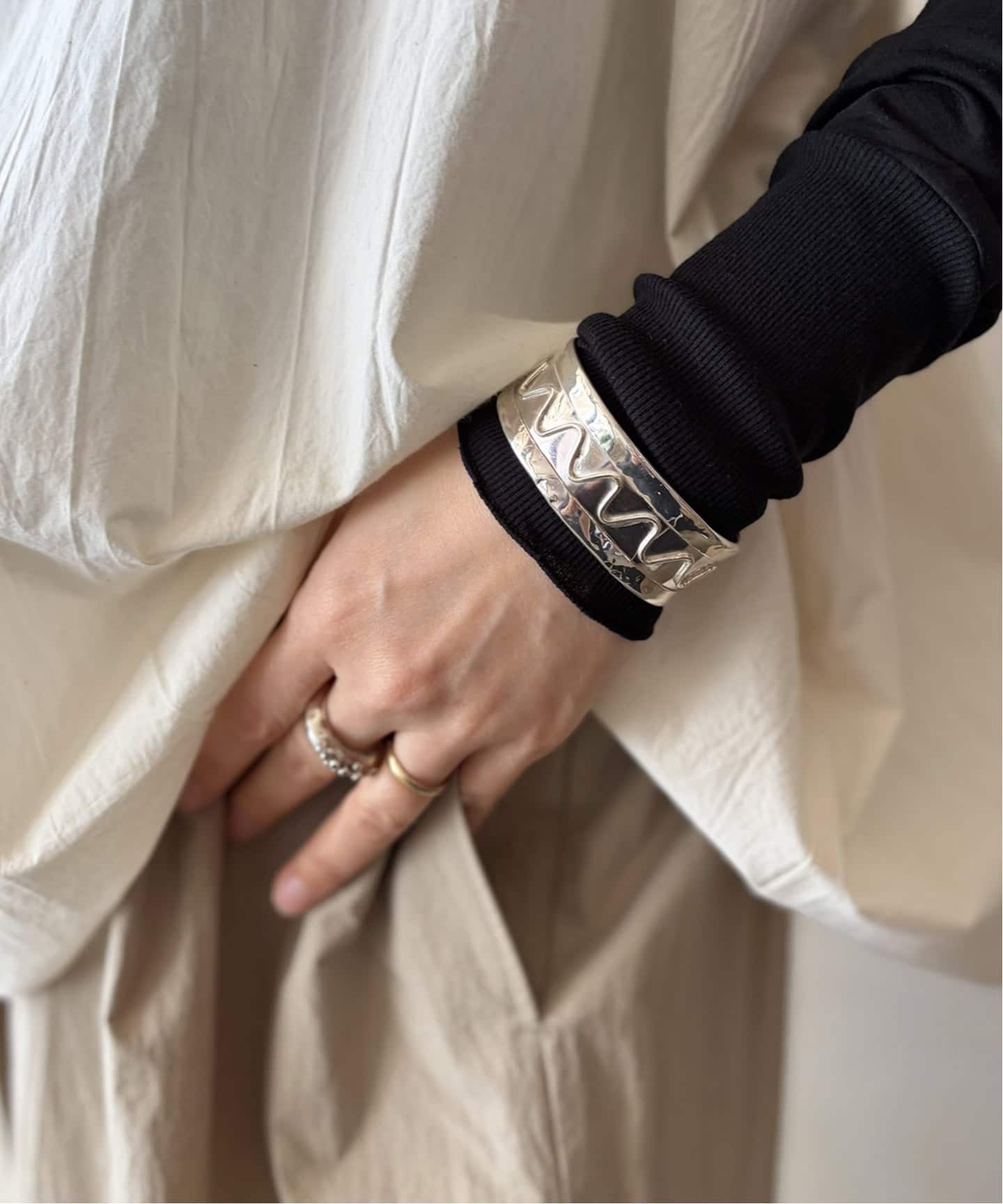 今回、春に向けてシルバーを中心とした商品をオーダーしました。端境期のアクセということで、今のスタイルから春に向けても、どちらのスタイリングにもプラスできるネックレスやリングを中心に。