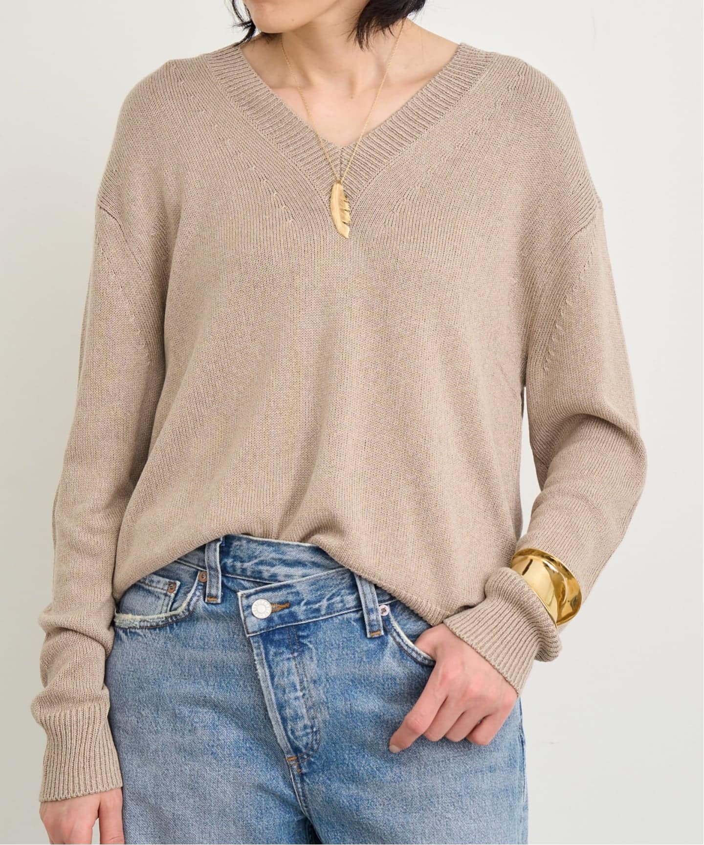 オンオフどちらにも対応できる絶妙なトーンで、デニムスタイルに合わせても上品にまとまります。
