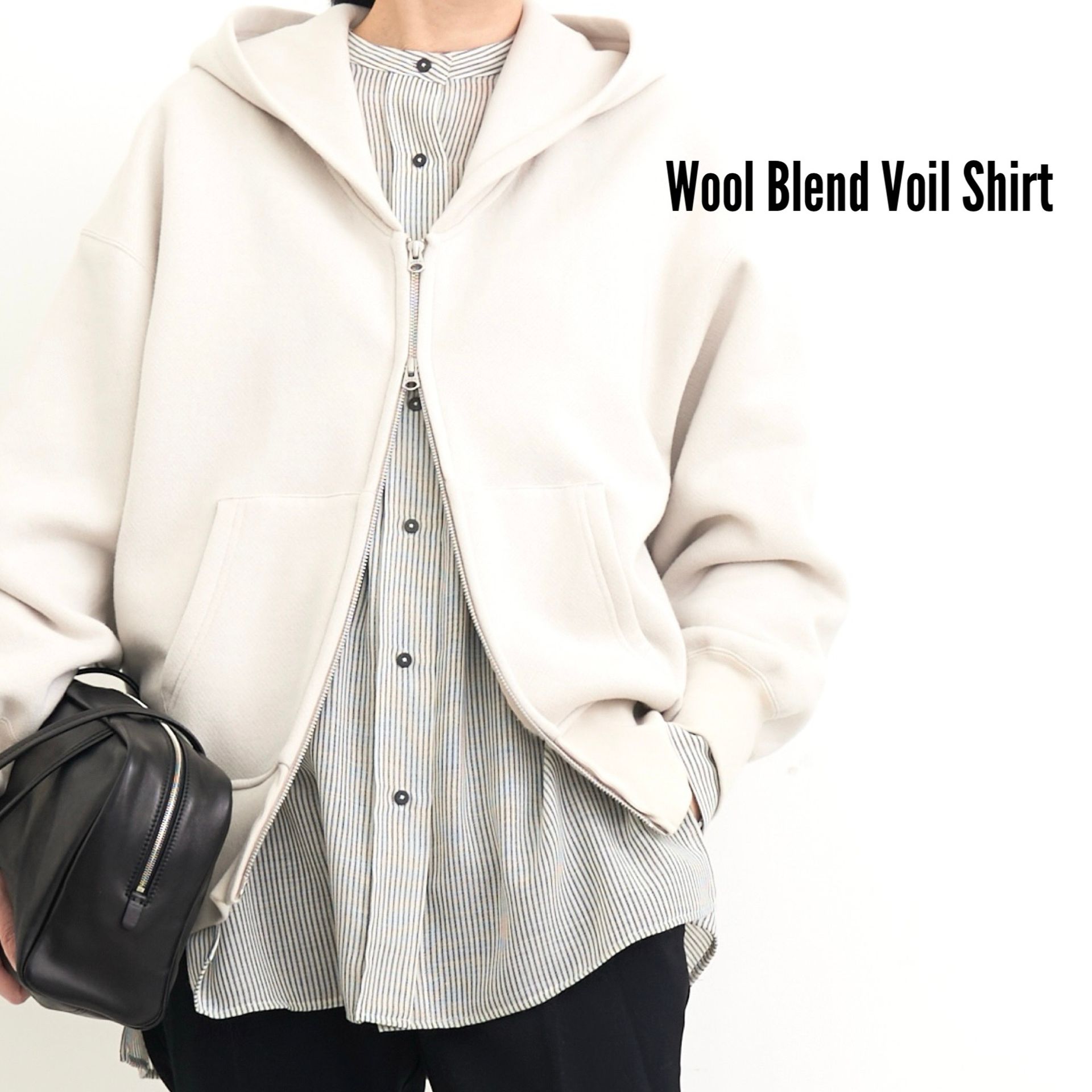 強撚ウールとポリエステルをブレンドした国産の素材を使用したストライプシャツ。ドライな肌触りと軽い着心地に加え、手洗い可能な嬉しいポイントも。