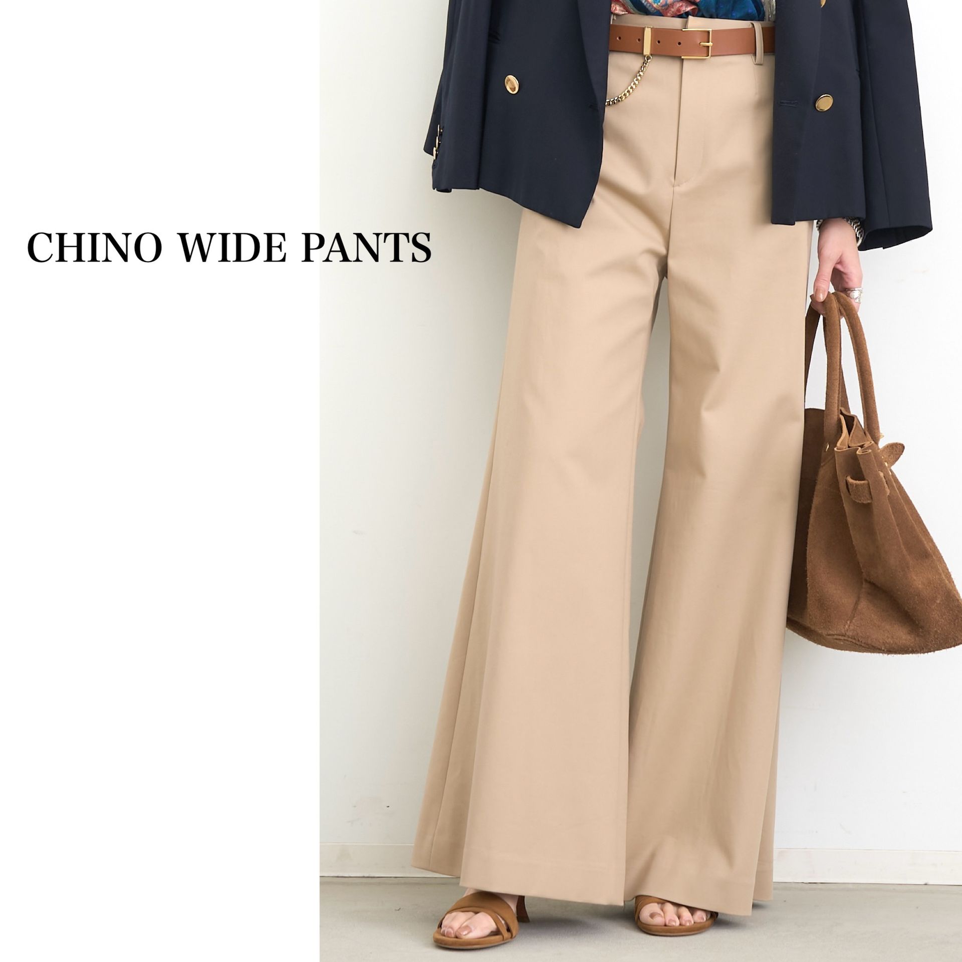 シルエットの美しい大人のためのチノワイドパンツ。