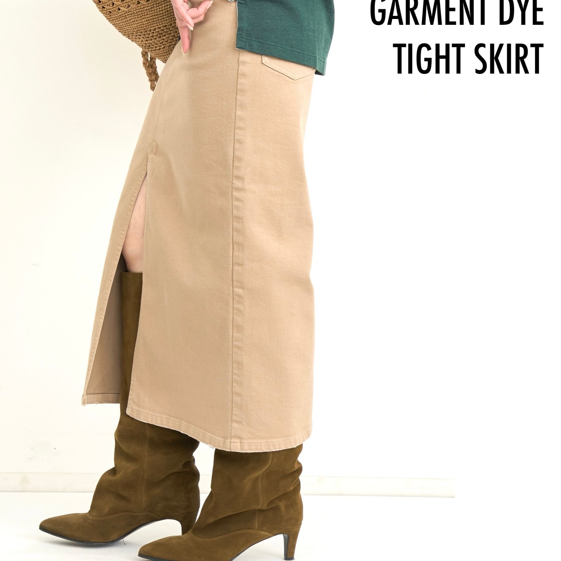 スカートは素材違いのベージュも入荷します。