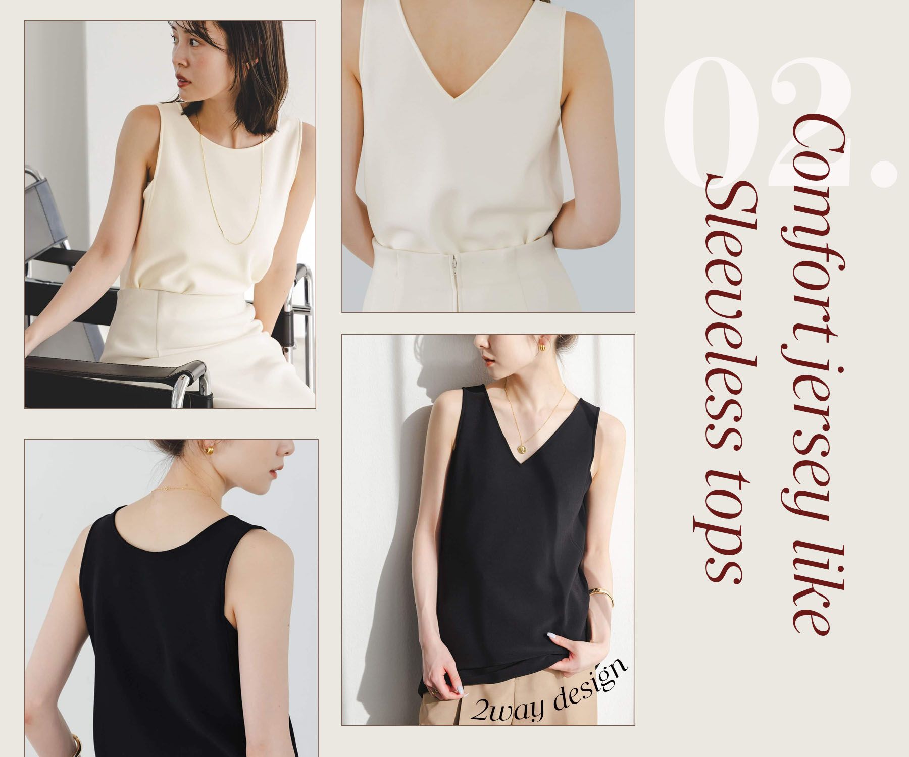 個人的に顔周りはすっきりと着たいタイプなので、デコルテが出るネックデザインも好き。