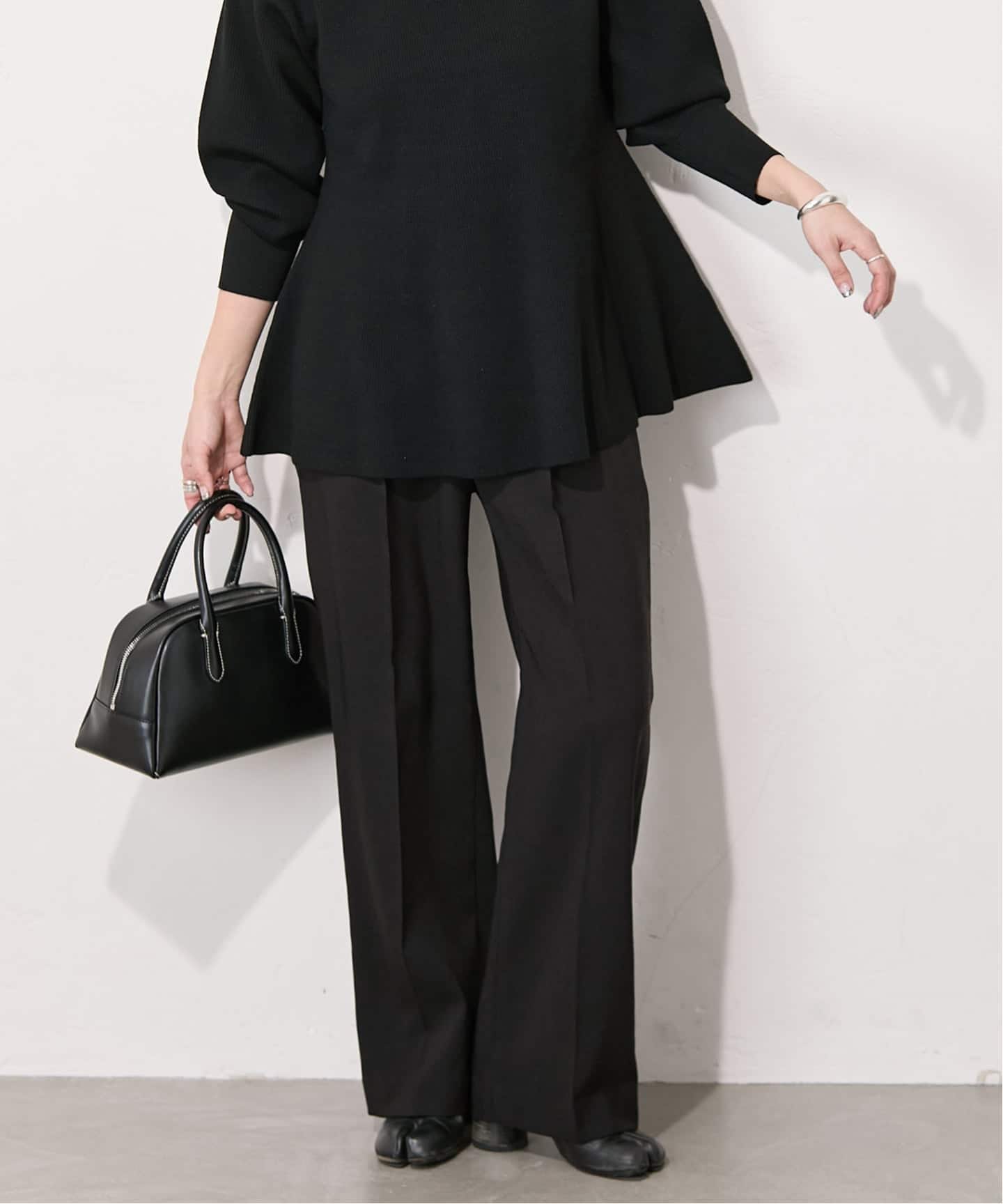 さりげないペプラムが女性らしくもカジュアルにマッチします〇