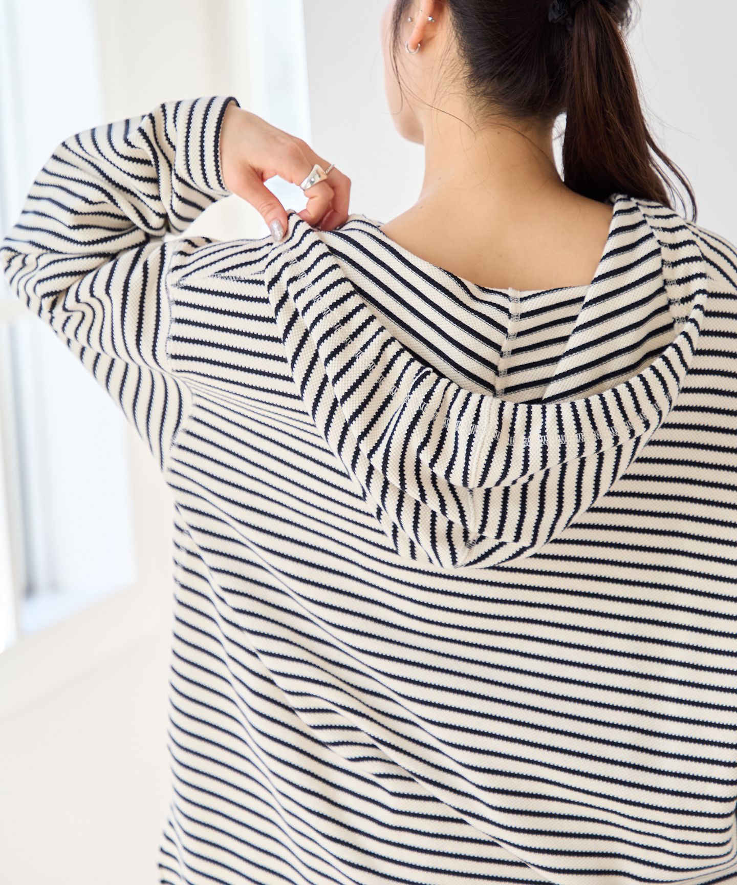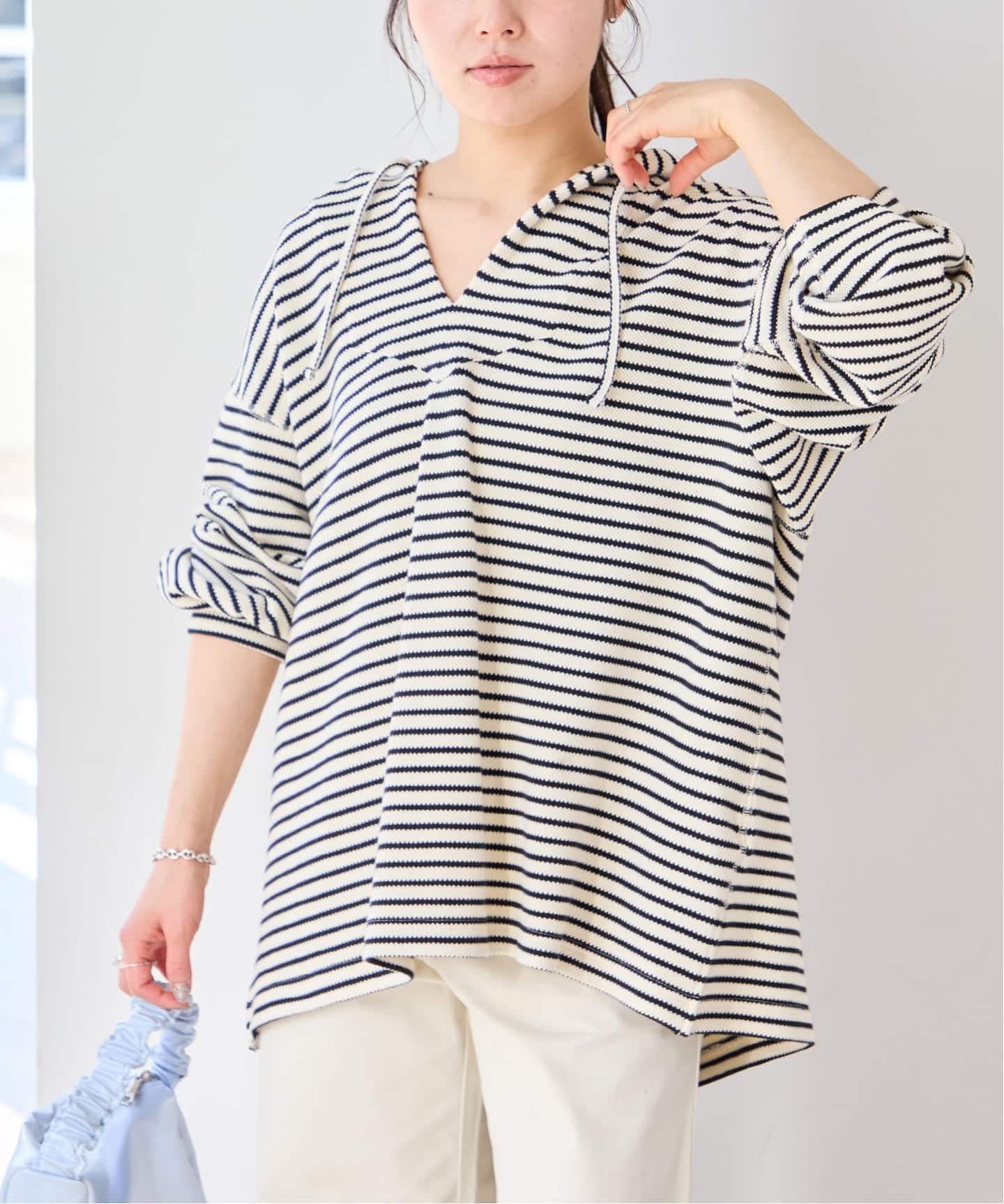 表情豊かなボーダー編みと、柔らかさのあるコットンニットが、リラックス感と上品さを両立してくれます。