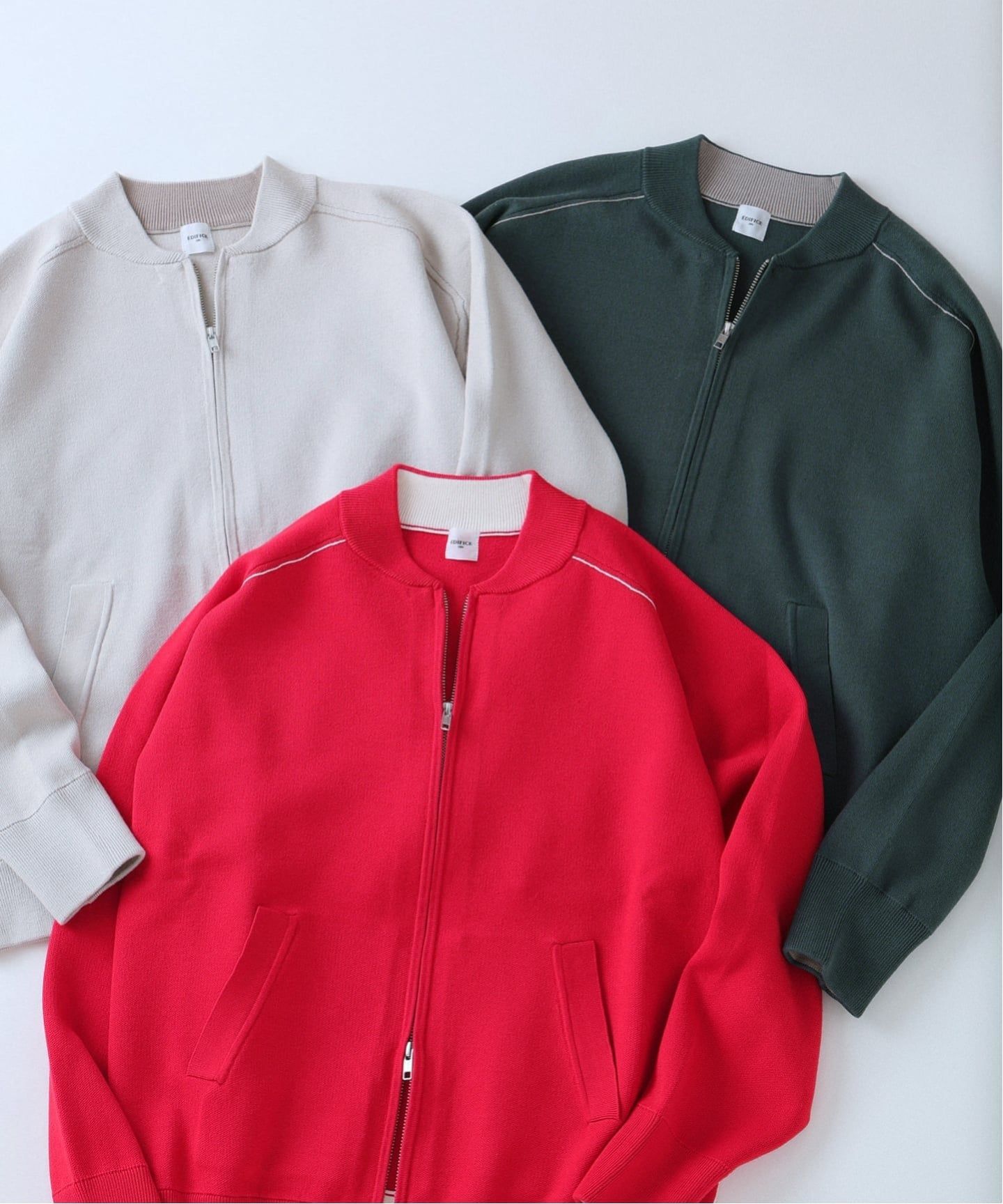 トラックジャケットの躍動感を、ニットならではの柔らかな質感で上品にアップデート。スウェットとは一線を画す、美しいドレープと奥行きのある発色が特徴です。幅広い世代の日常に馴染む計算されたリラックスシルエットで、一枚で着てもバランス良く決まります。ダブルジップ仕様によりニュアンスを変えられ、セットアップからデニムスタイルまで幅広く対応できるのも魅力です。