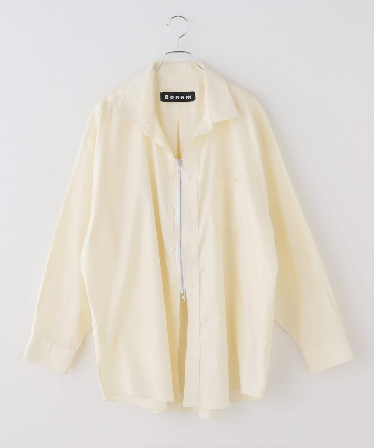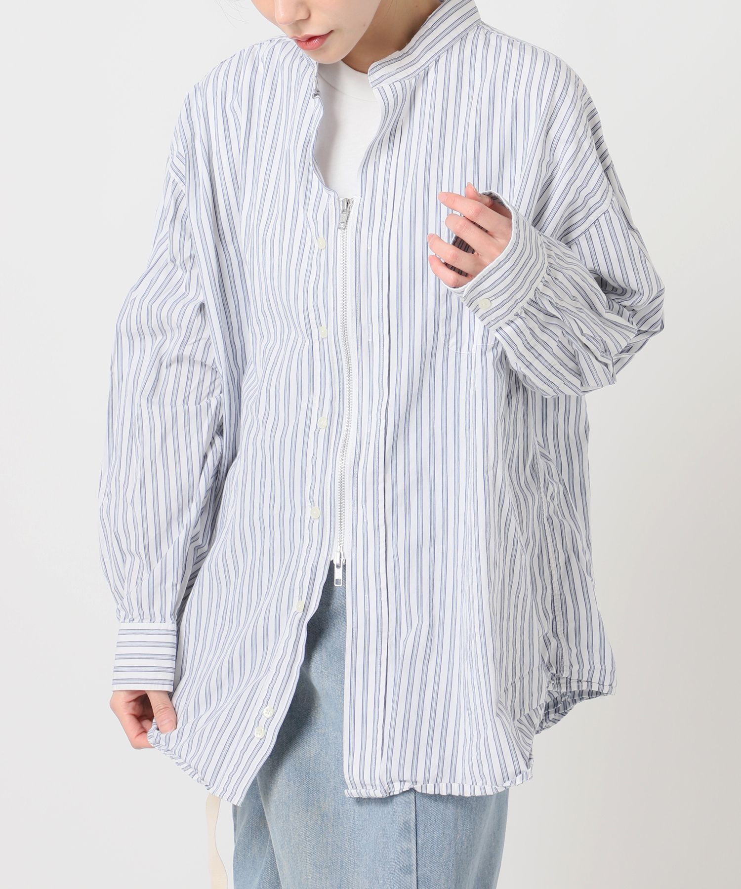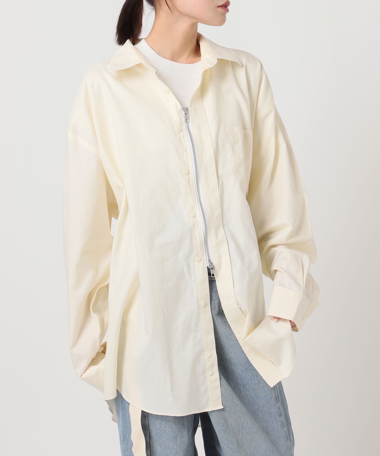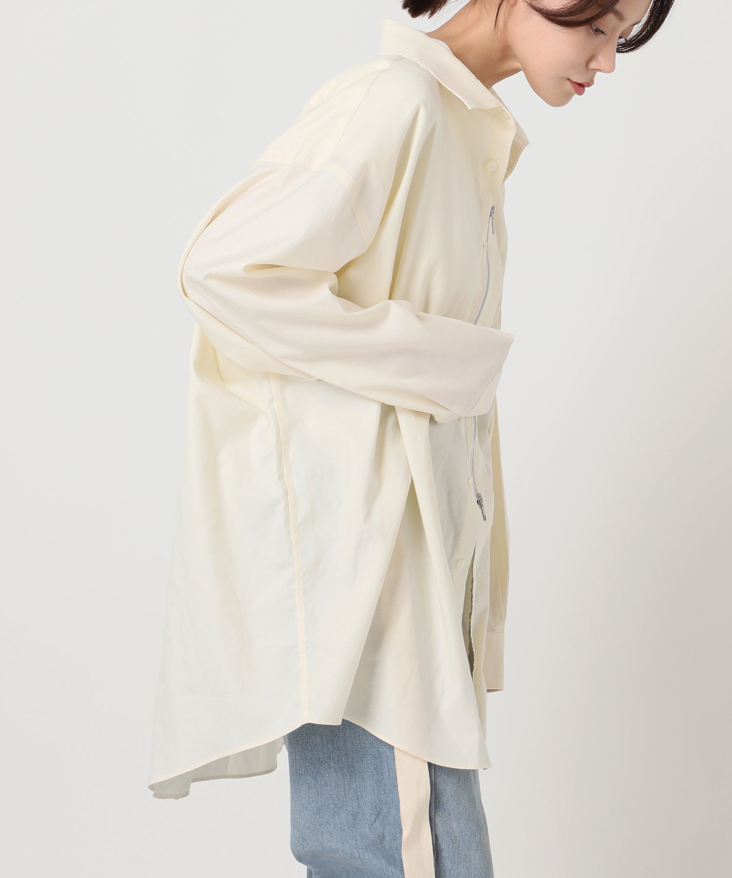 シャツに対してかなり短いジップで抜け感とアクセントをプラス。