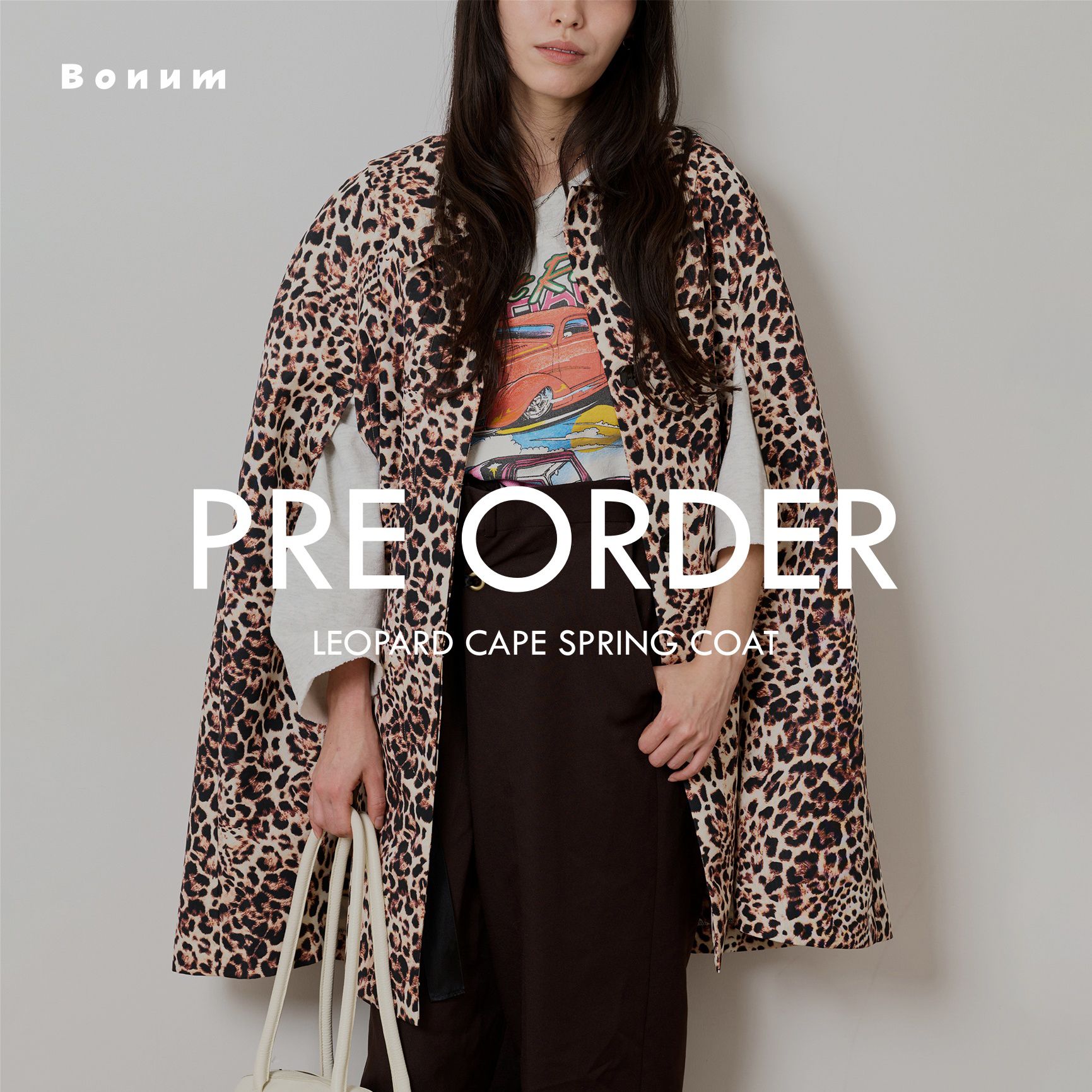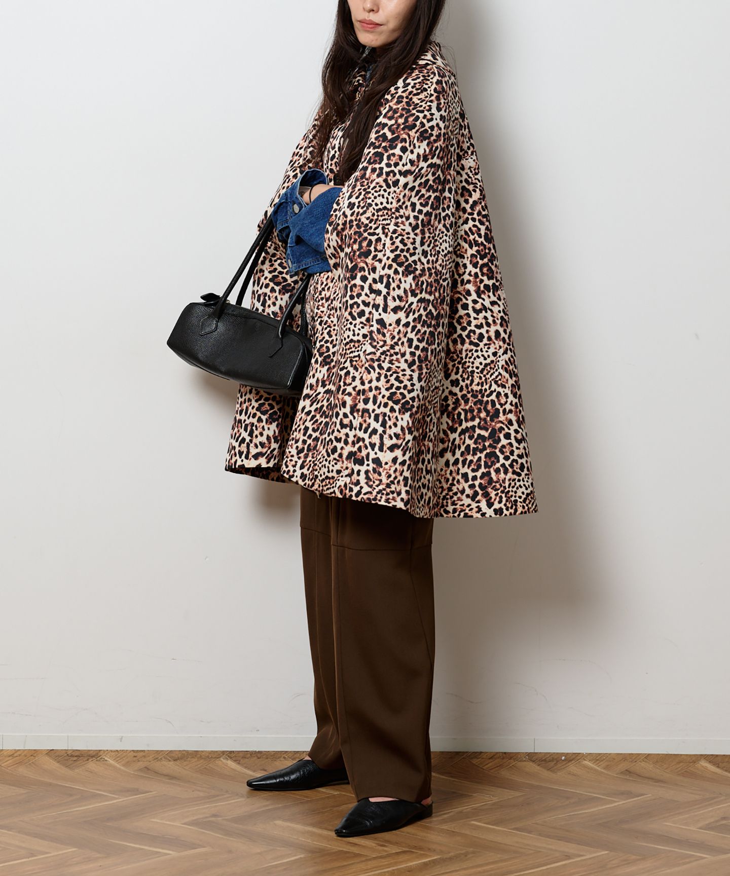 細番手の糸を密に織り上げた上品なグログランの生地にオリジナルのレオパード柄をのせ仕上げたマントコート。