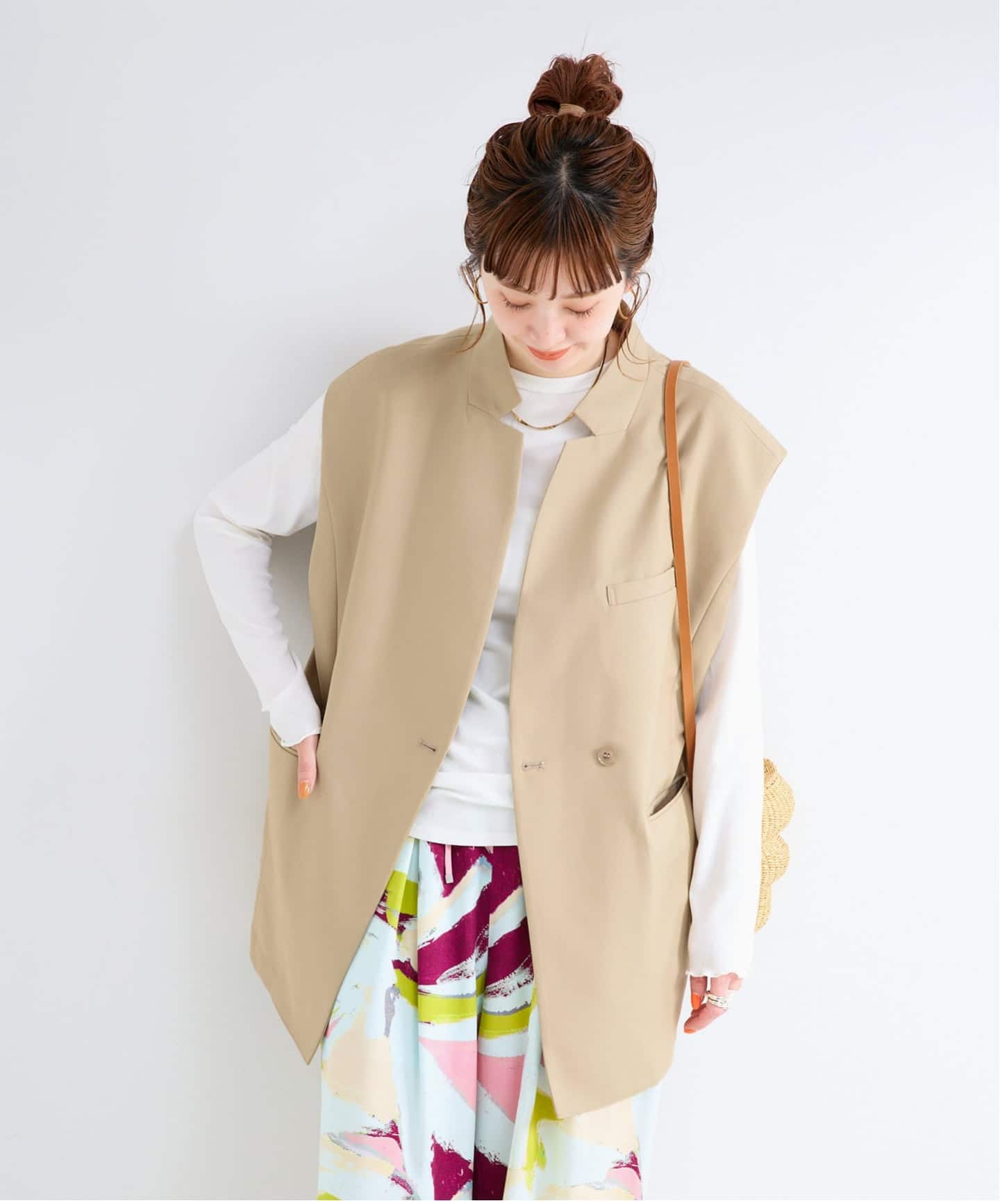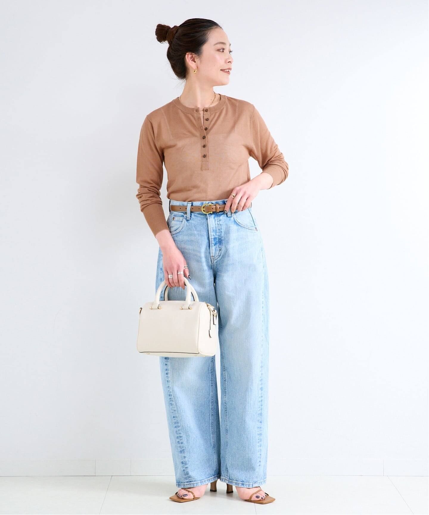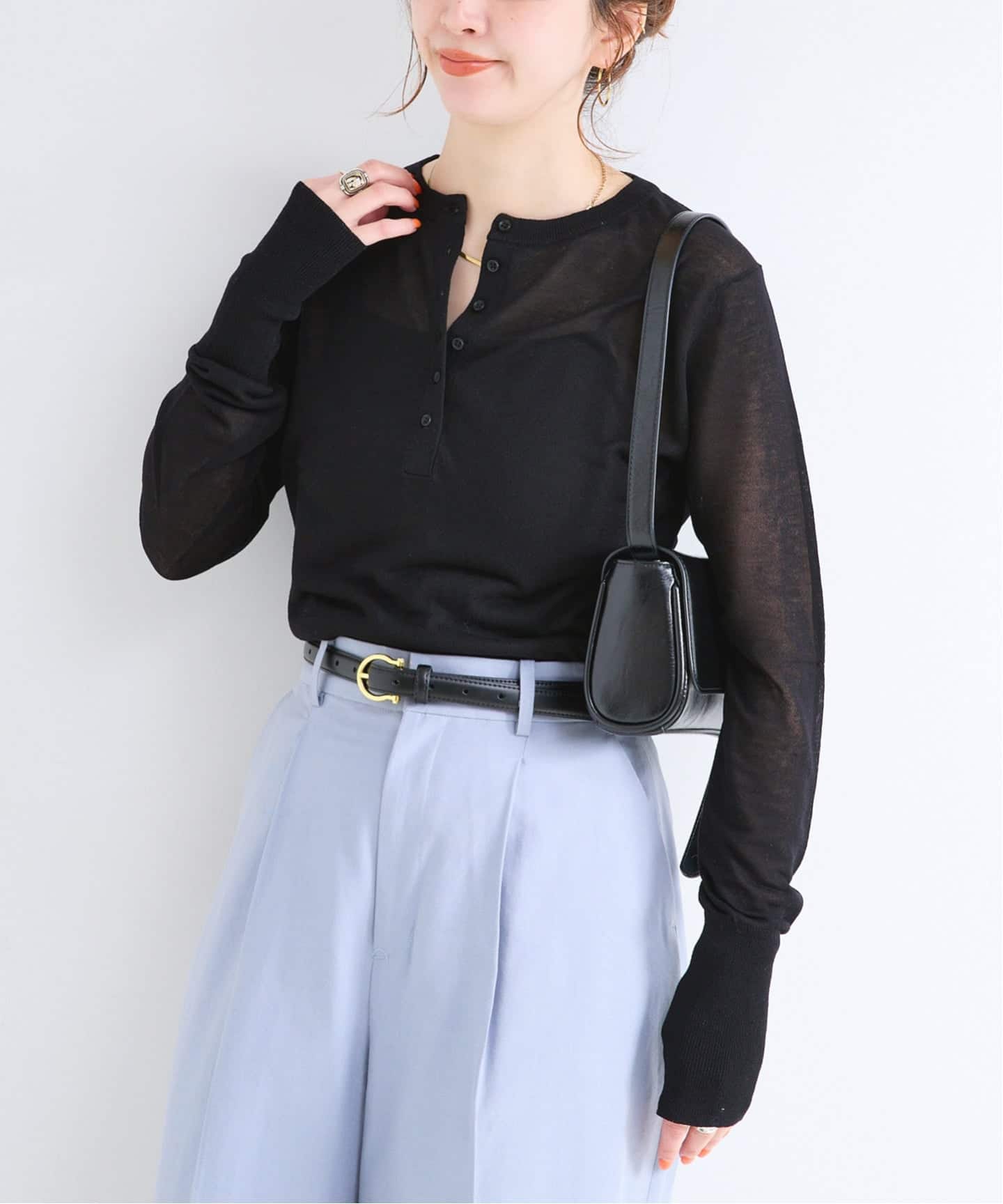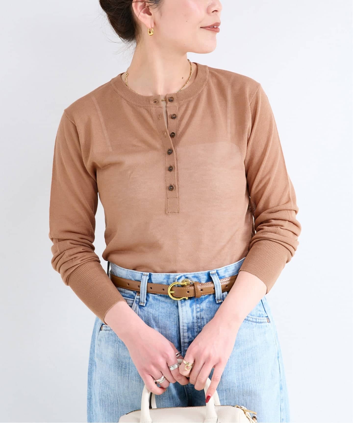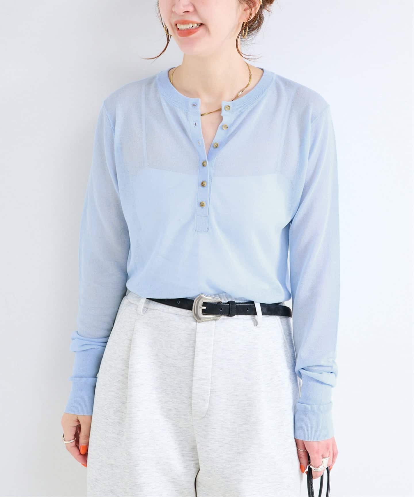 釦仕様のヘンリーネックデザインで、インナー次第で印象がガラリと変わるアイテム。