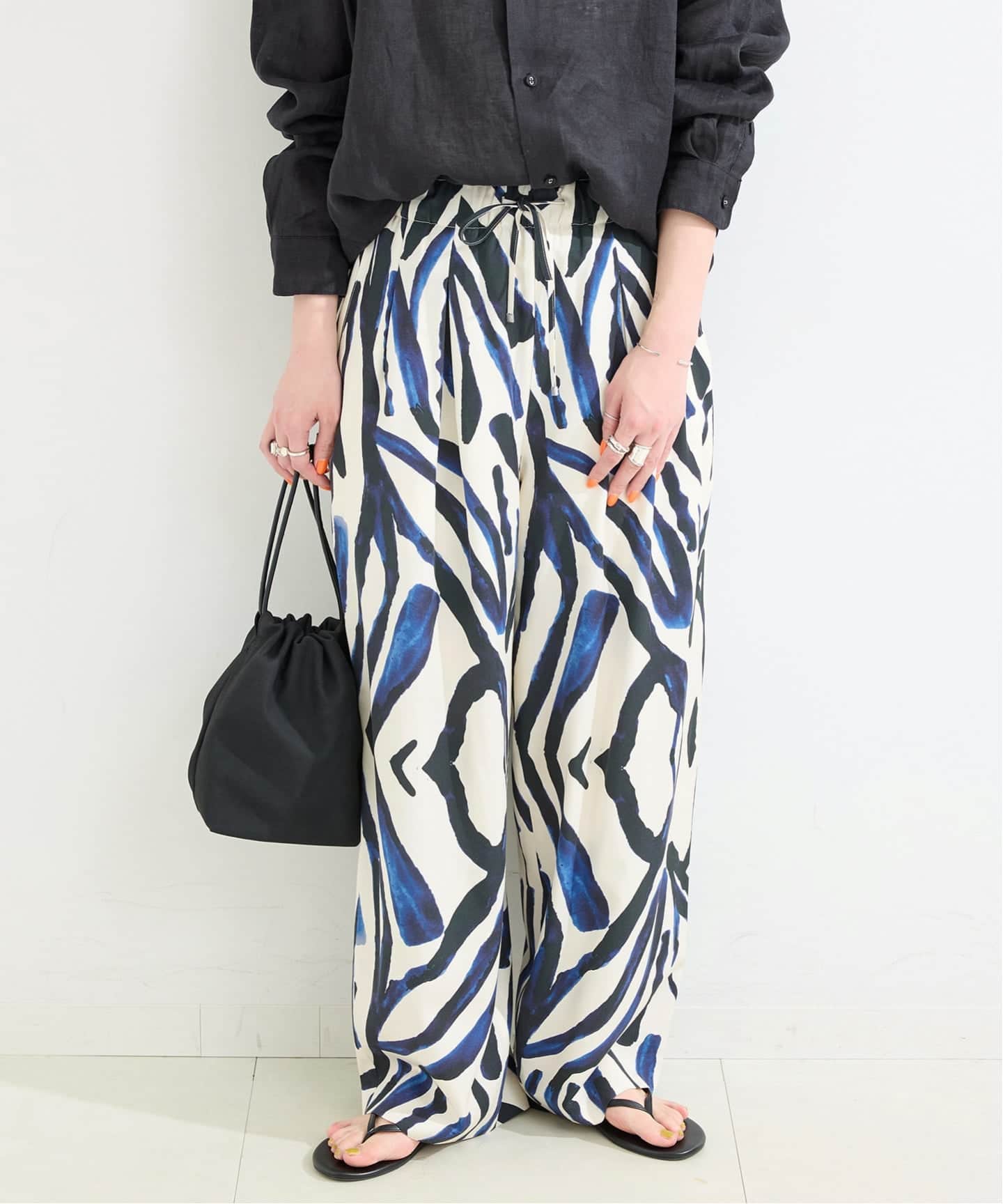 色合いも鮮やかで春の訪れを予感させるアートプリントイージーパンツ。