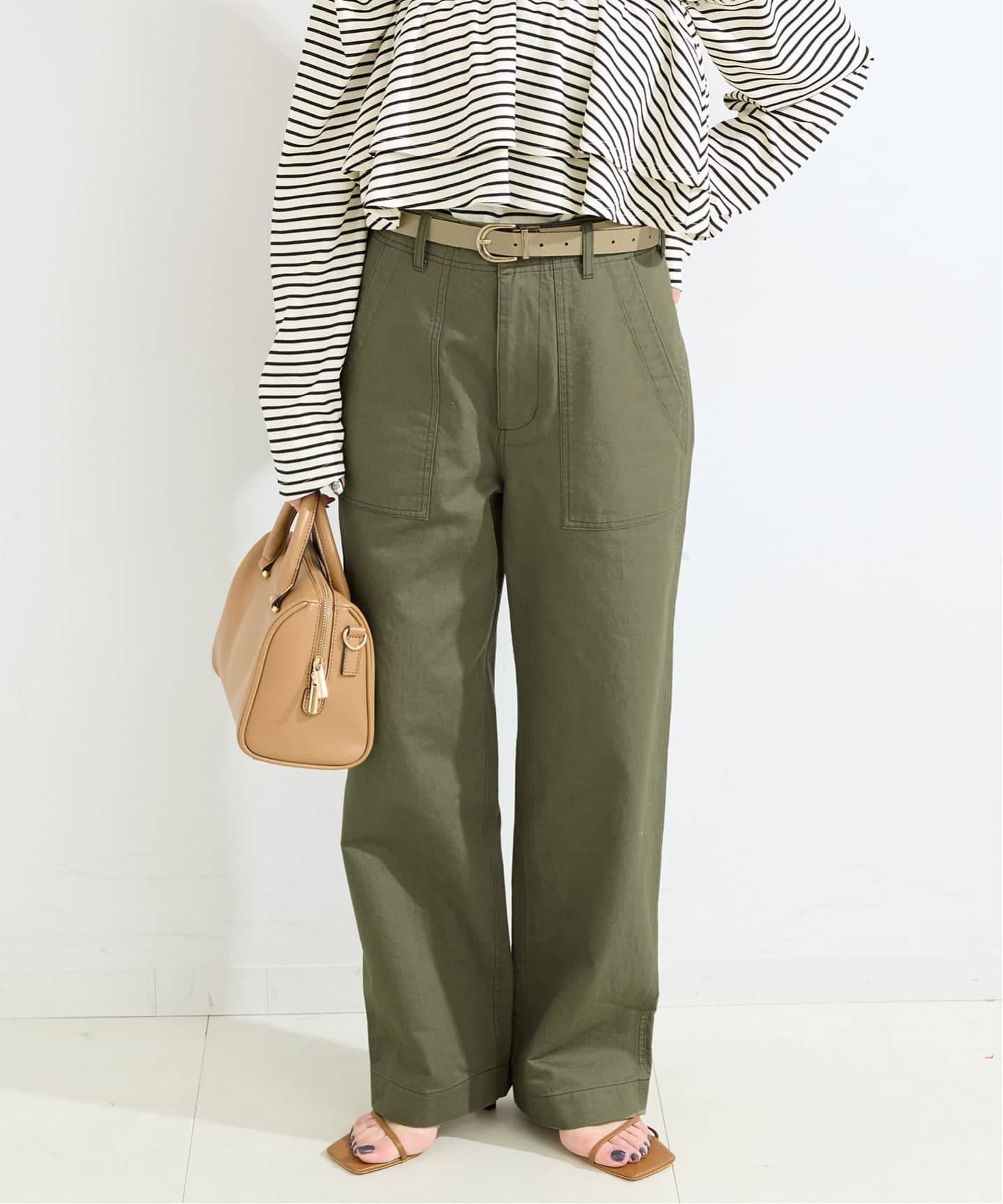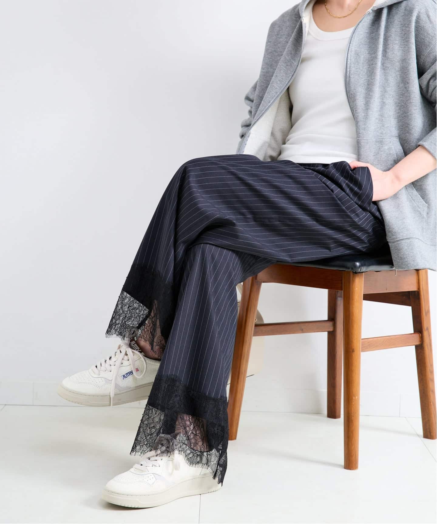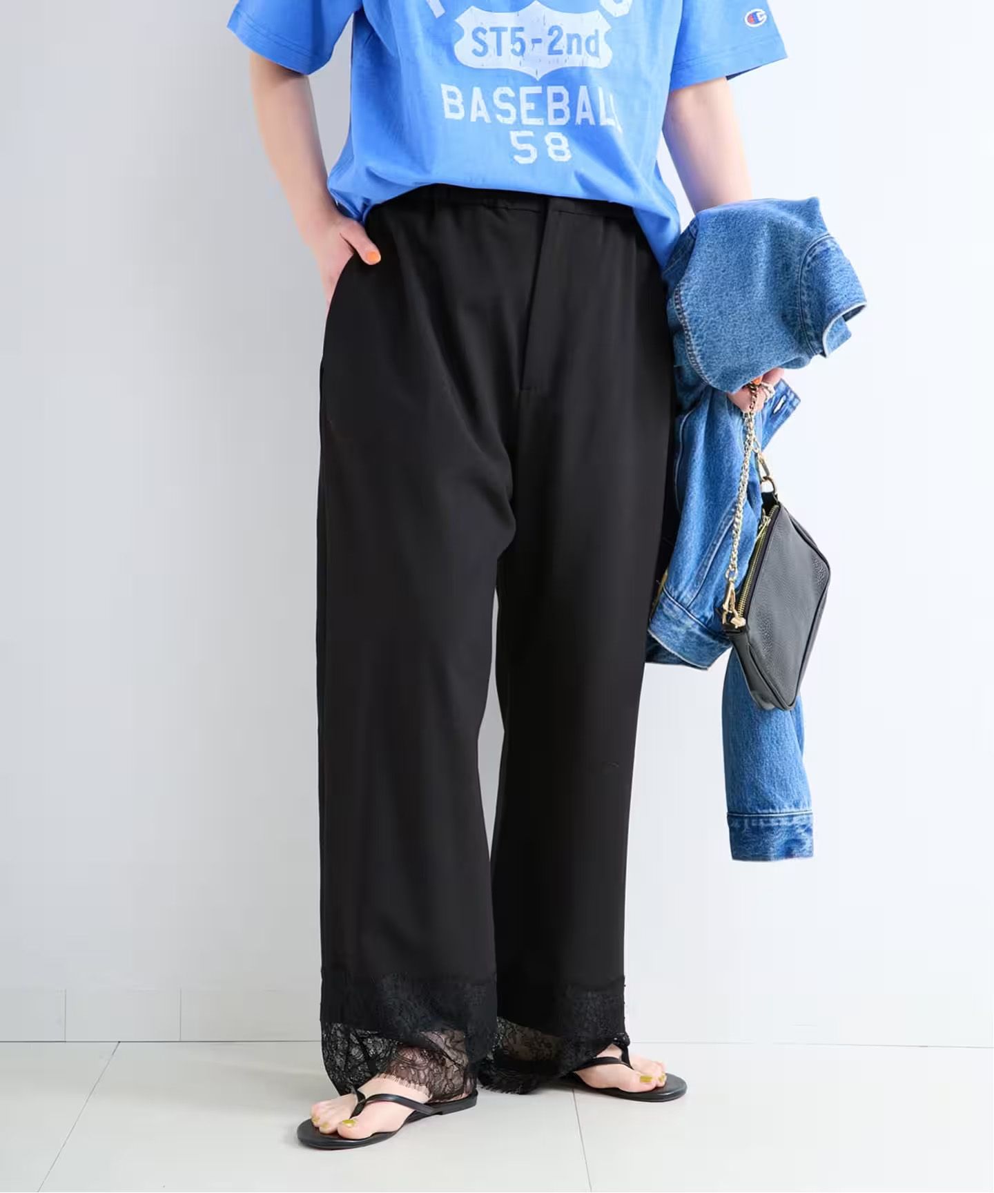 いつものパンツコーデがぐっと上品になる裾レース付きデザイン、イマドキなスタイリングに。