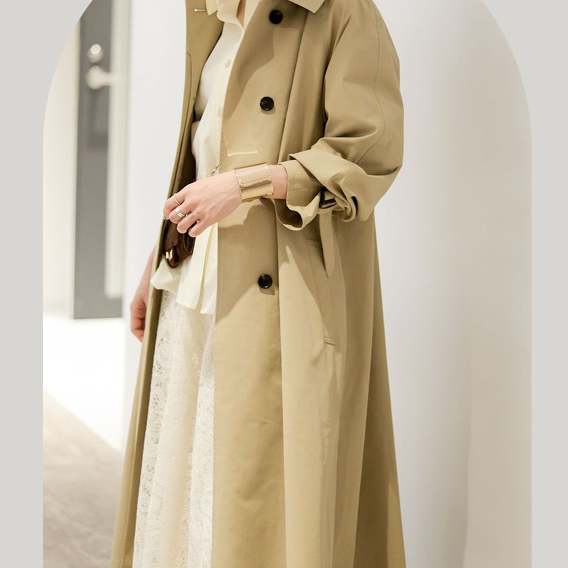 袖口はベルトで締められるトレンチディテールが入り、レディ感をプラスしてます。