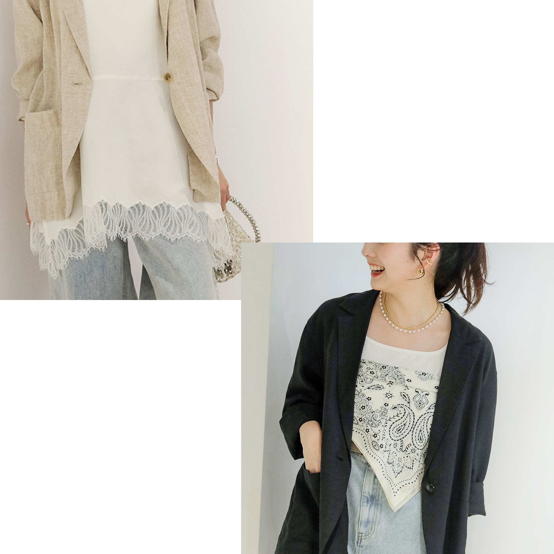 シンプルなインナー合わせでお洒落に見えるので、持っていると本当に使える1枚。