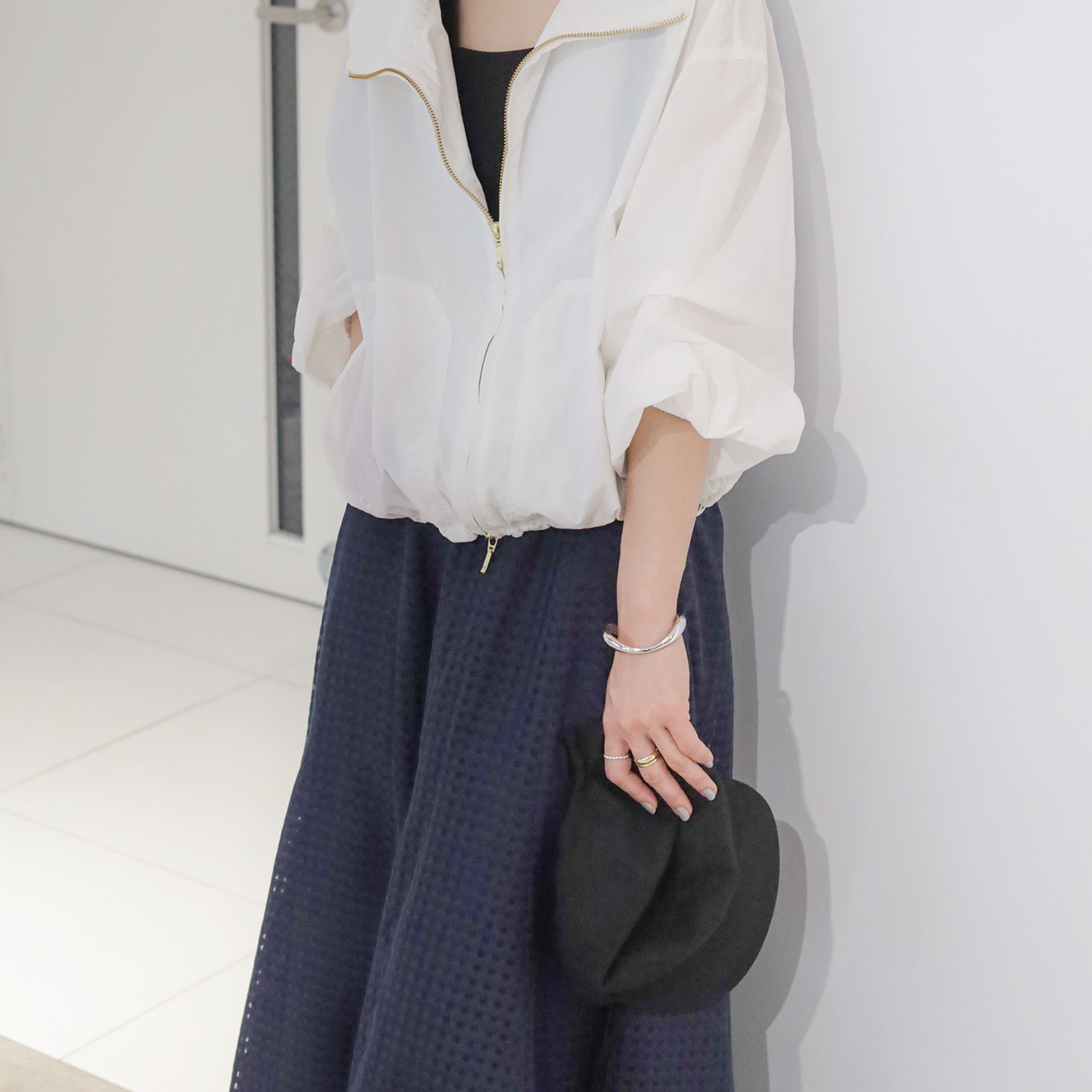 程よい艶とハリ感のあるナイロン素材を使用し、カジュアルになりすぎず大人っぽく着られる一枚です。