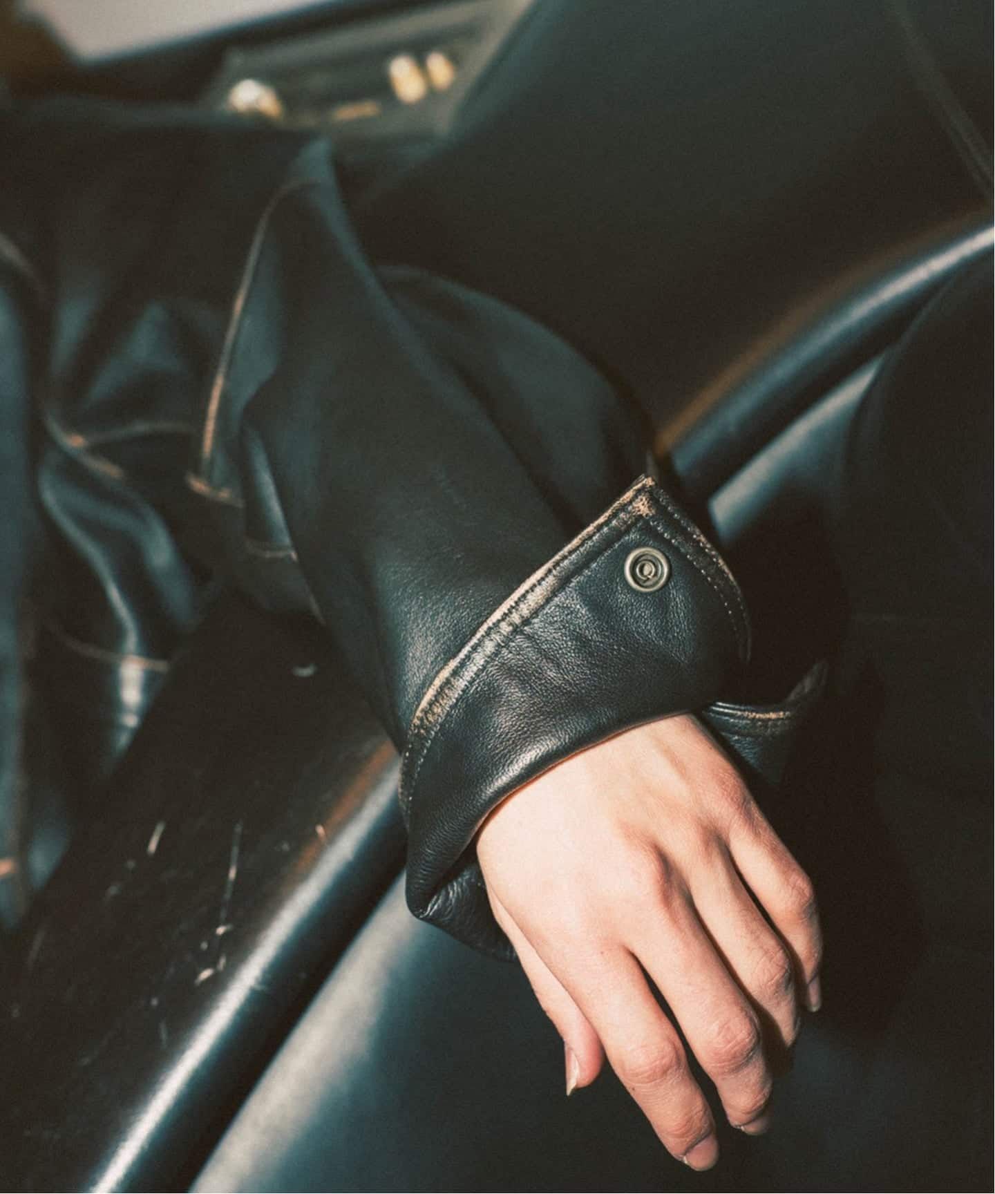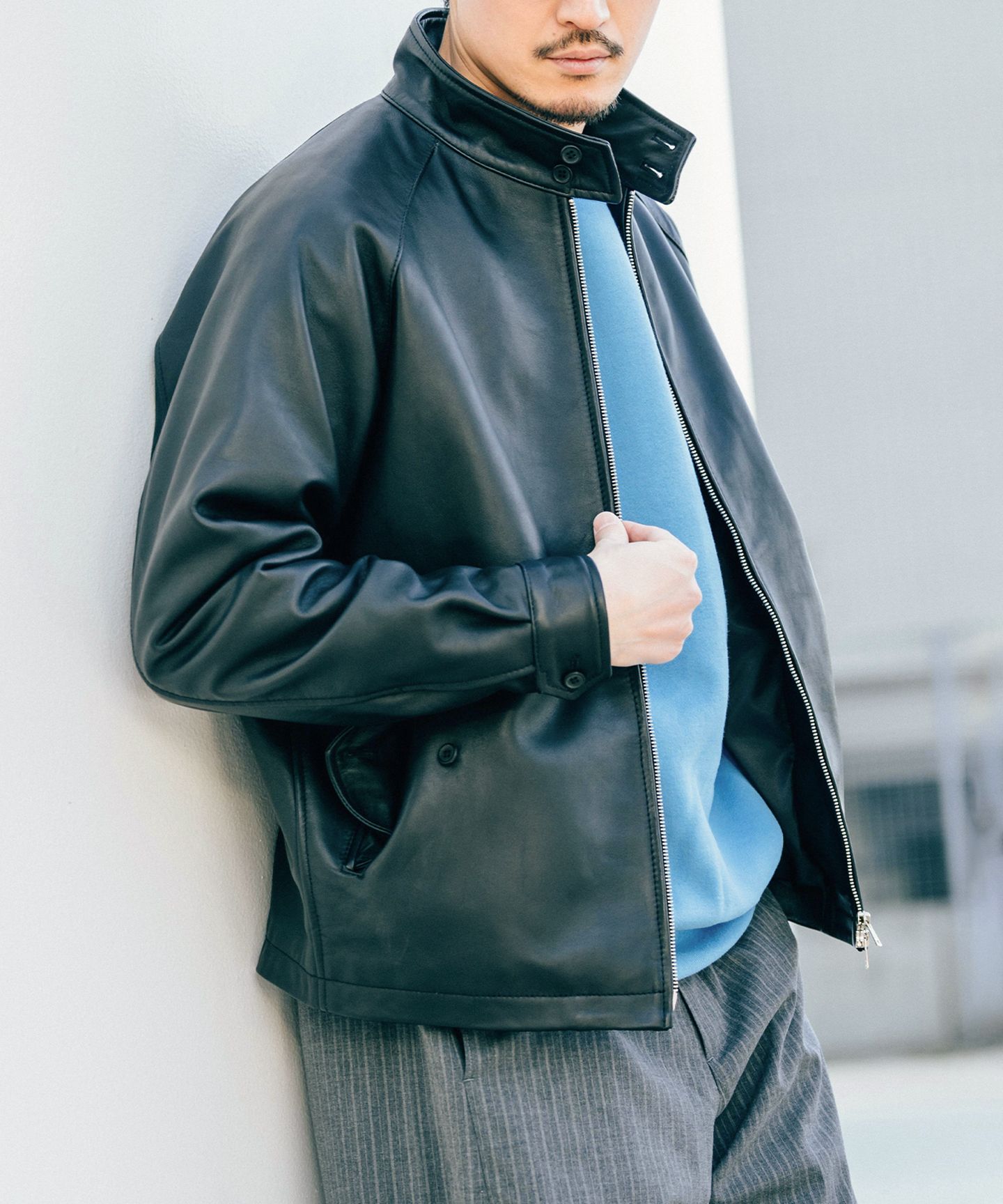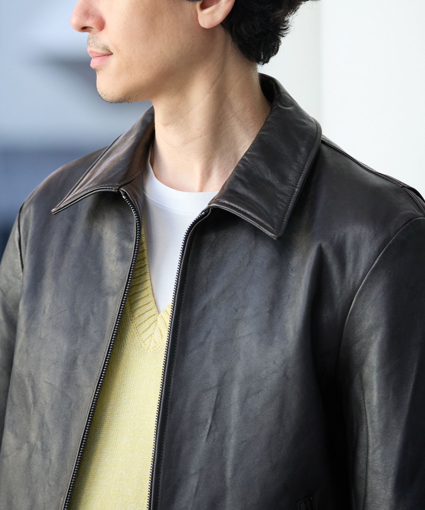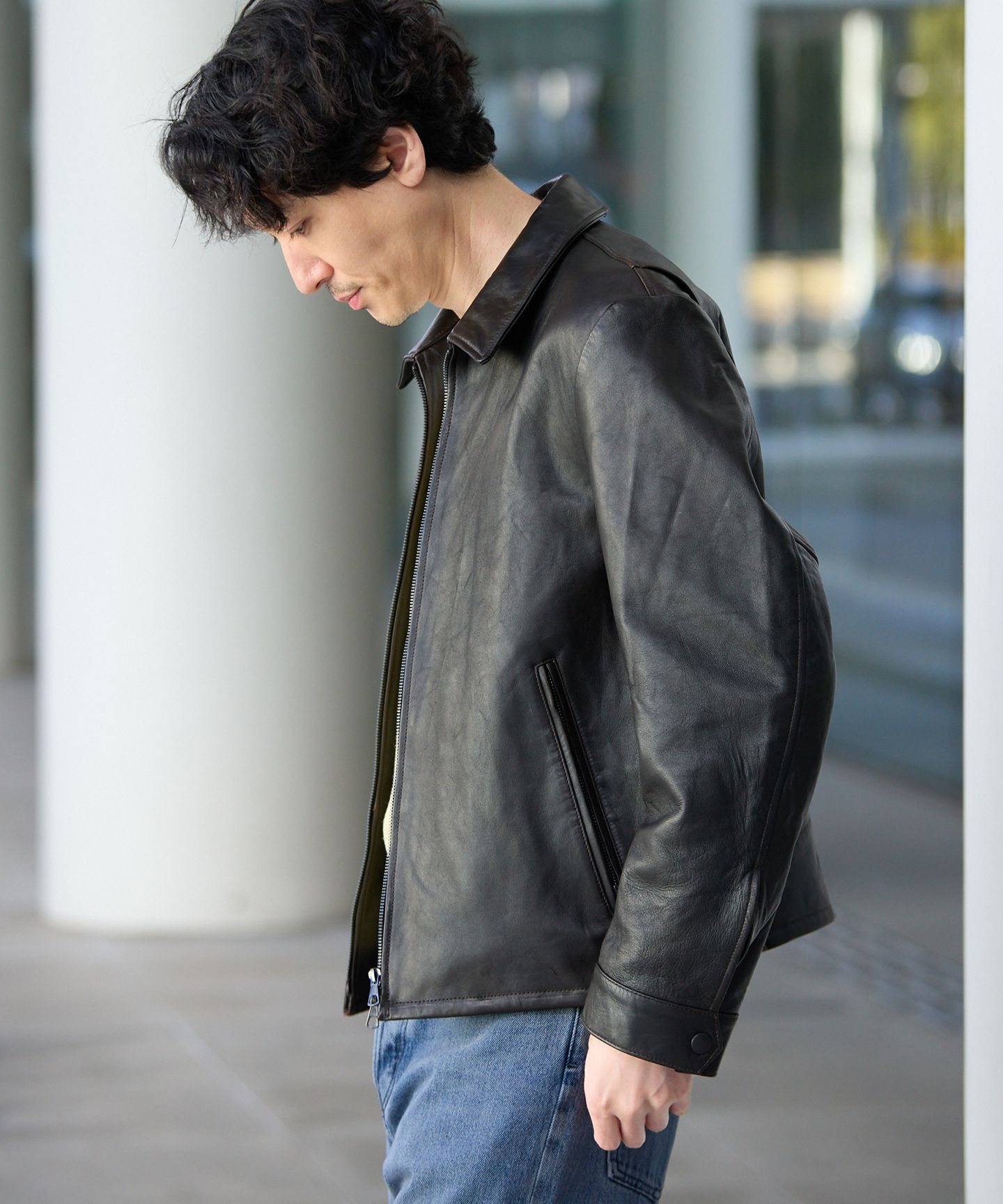 程よい厚みとハリのあるラムレザーを使用し、着込むほどに風合いが増していく上質な一着。