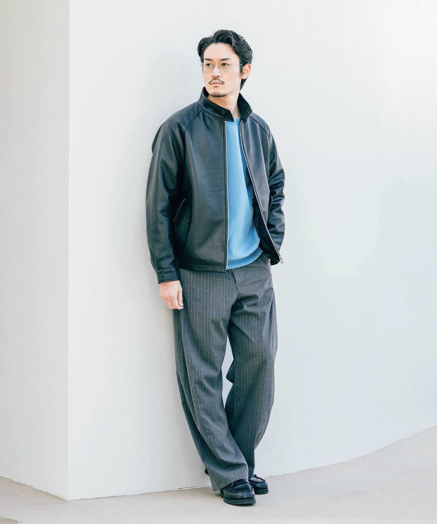 クラシックな背景を持つレザーアイテムを、都会的でモダンなバランスに再構築しました。日常に馴染む軽やかな着心地と、着るだけで品格が漂う佇まいを両立。