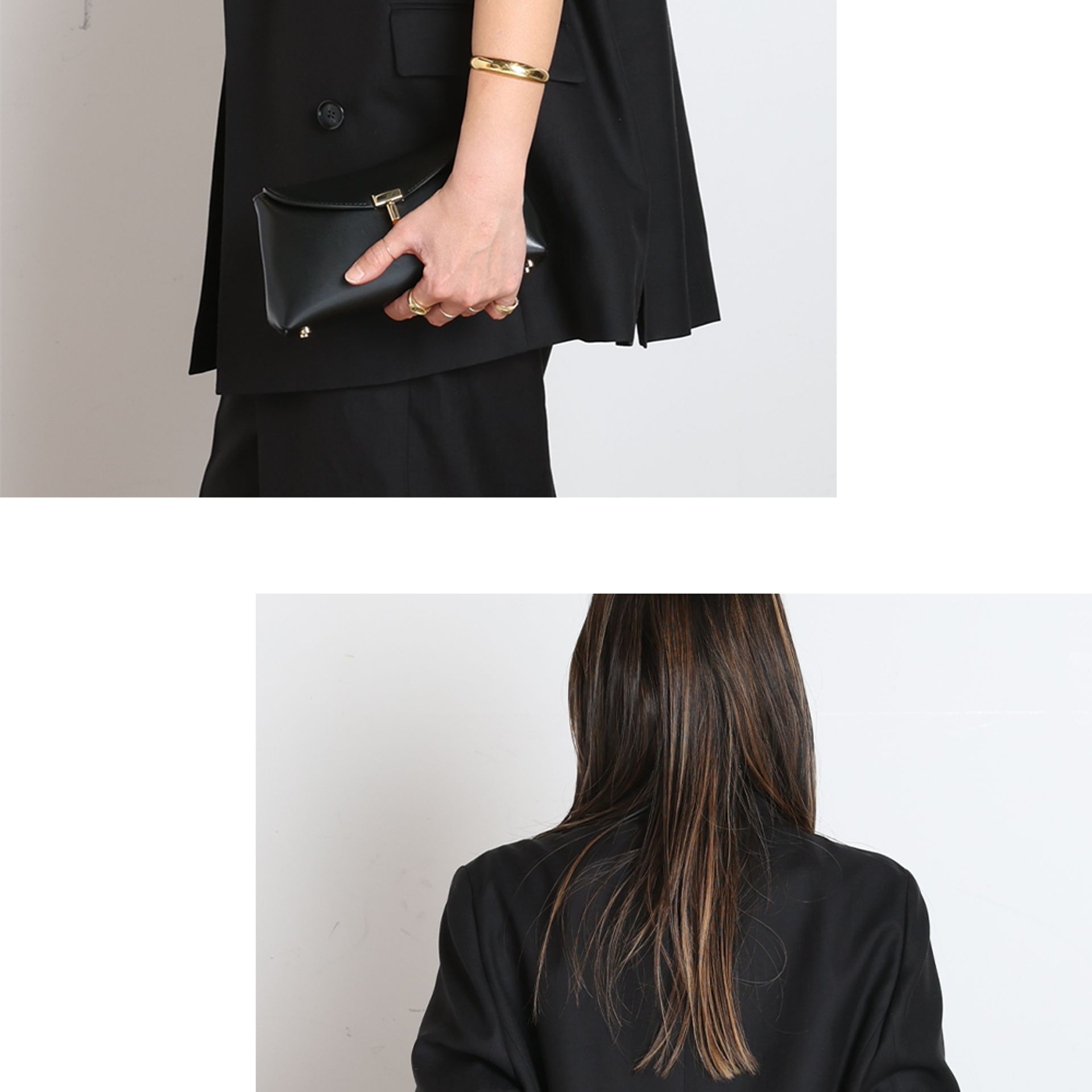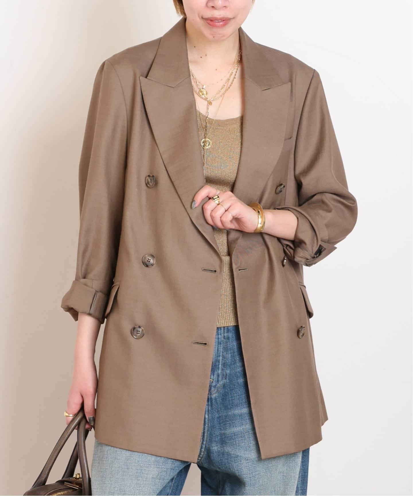 やや太めにデザインされた襟、パットなしの肩ラインなど細かなディテールで今シーズンの気分をプラス。