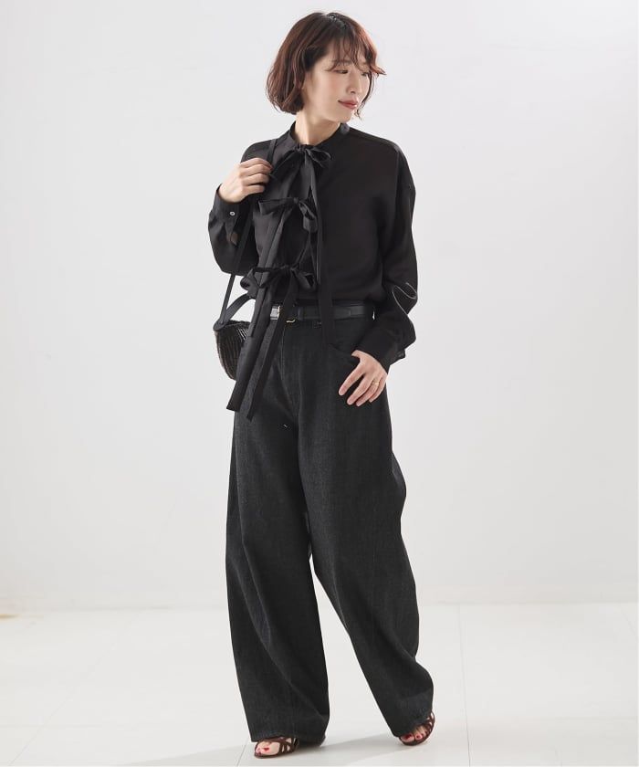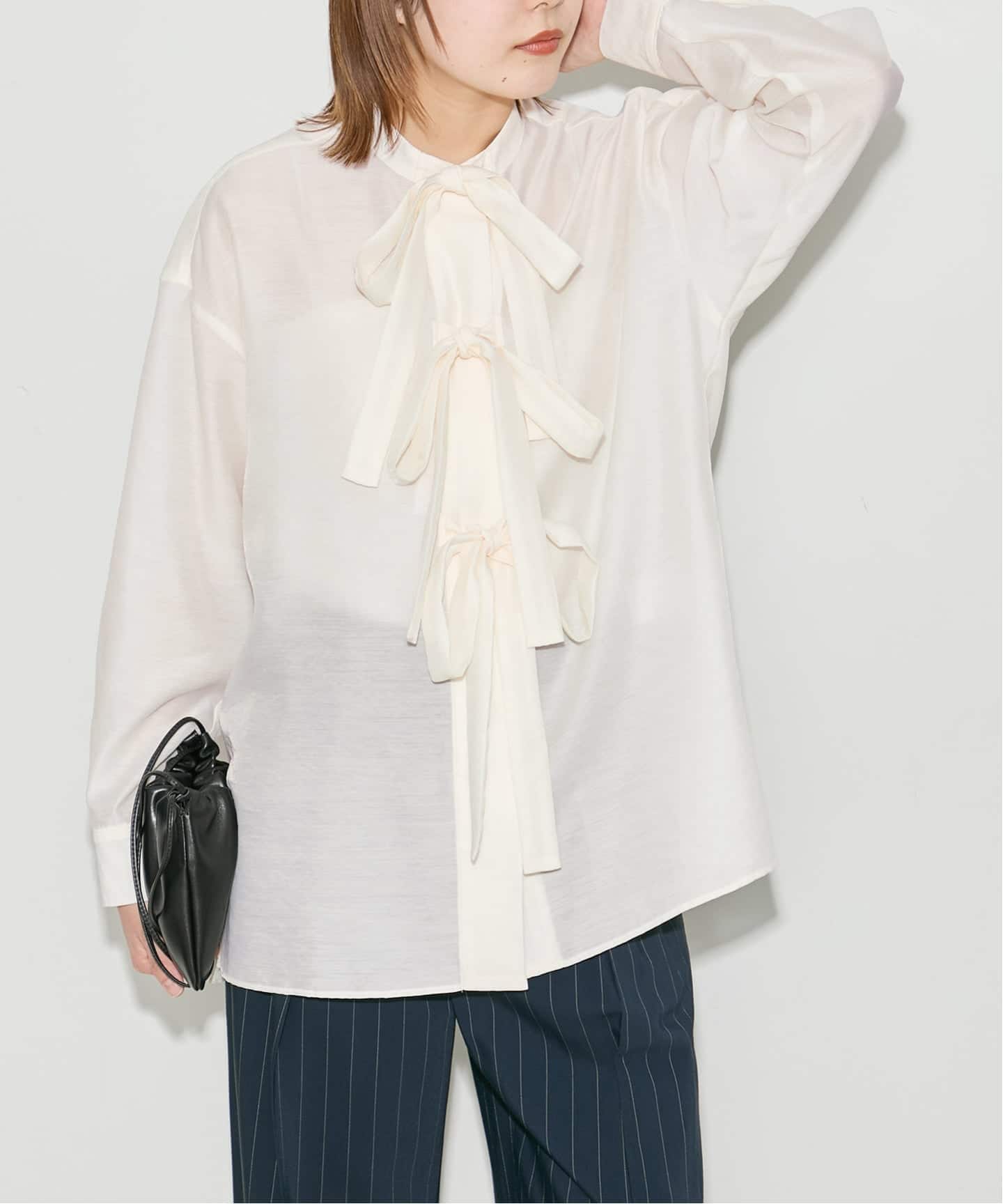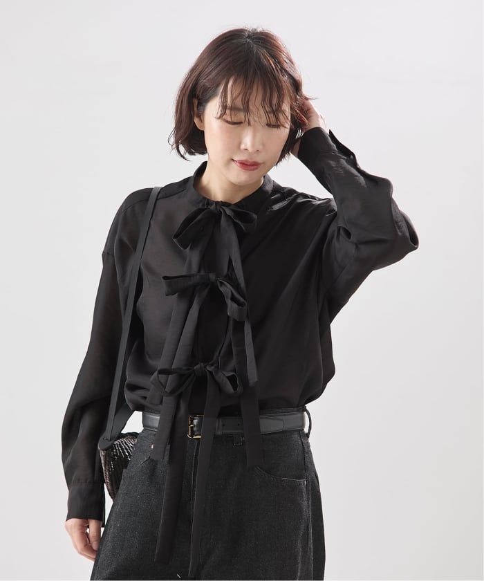 |シアーサテンリボンブラウス