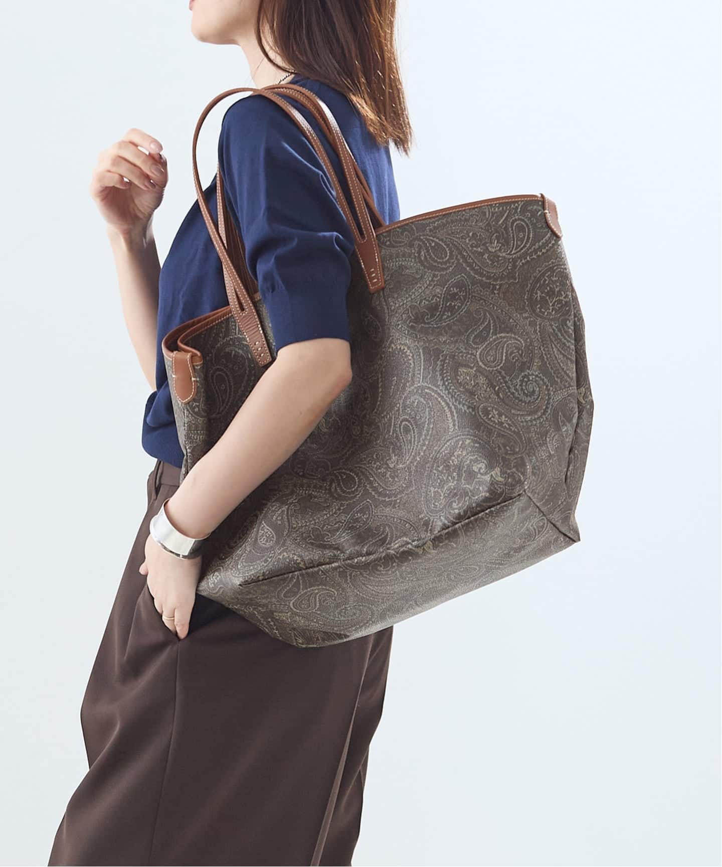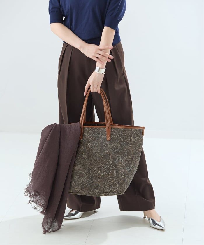 クラシカルなペイズリー柄が印象的なトートバッグは、洗練された大人のスタイルにぴったりです。肩掛けしやすい長めのハンドルと、たっぷり収納できるサイズ感で、デイリーからお出かけまで幅広く活躍。大容量なので旅行にも!シンプルなコーデに合わせるだけで、上品な華やぎを添える一品です。