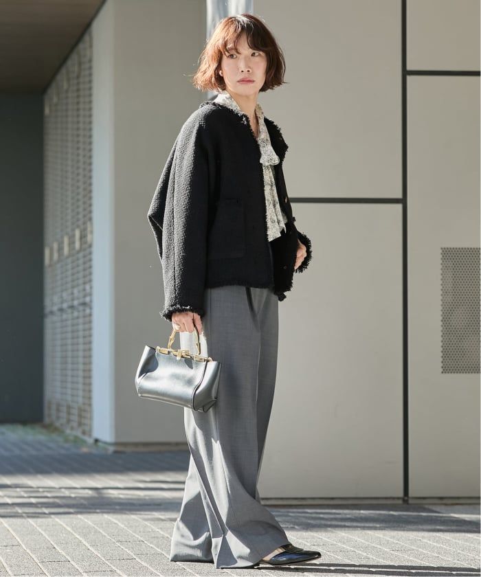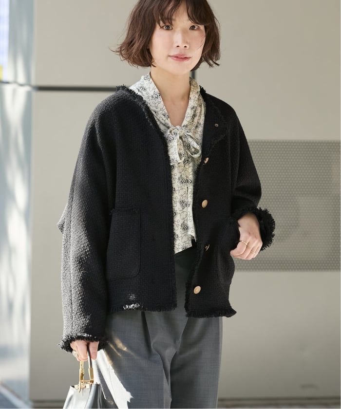 イタリアのGIOLICA社の生地を使用したツイードジャケット。肩がおちたゆったりとしたシルエットで、コンサバにならないようなサイズ感になっています。着丈は少し短めに設定し、きちんと感もあるデザインに。袖のボリューム感もポイントです。小柄な方もバランスよく着ていただけます◎ONOFFどちらにも活用でき、重宝するアイテムです◎