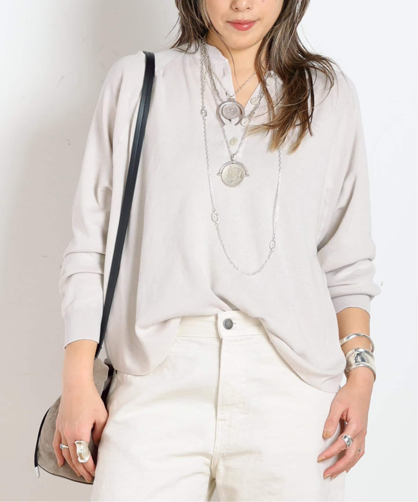 アクセサリーや小物でスタイリングを引き締めるのも大事なポイント。