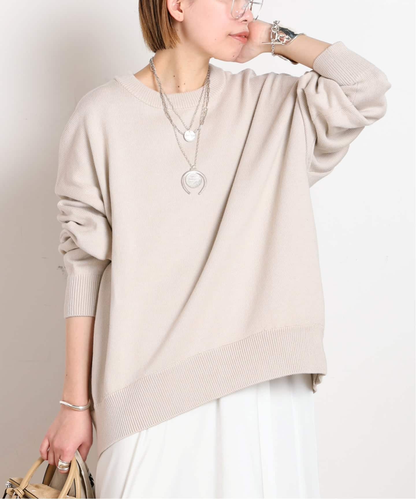 そんな時に出会ってしまった、EVERYDAY I LIKE.のベーシックニット。落ち感のある柔らかいコットンを使用しているので着心地が抜群でこの春の一軍トップスになる予感!