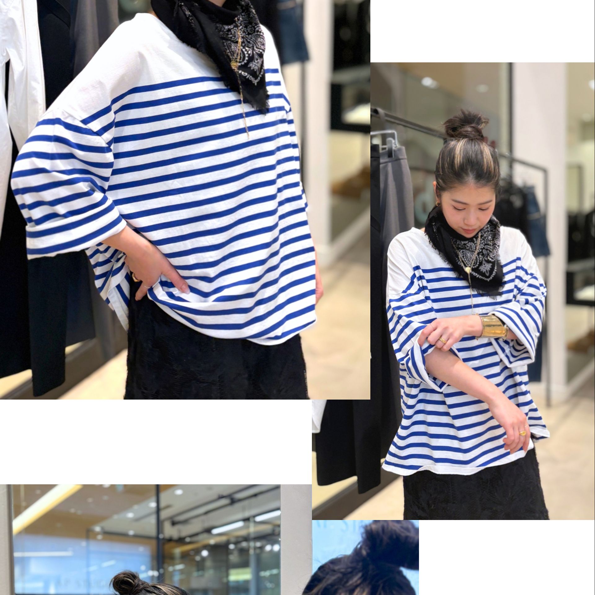 ボーダーってカジュアルな印象がありますが、柔らかな生地と身体が泳ぐシルエットなので女性らしさも演出する1着です。