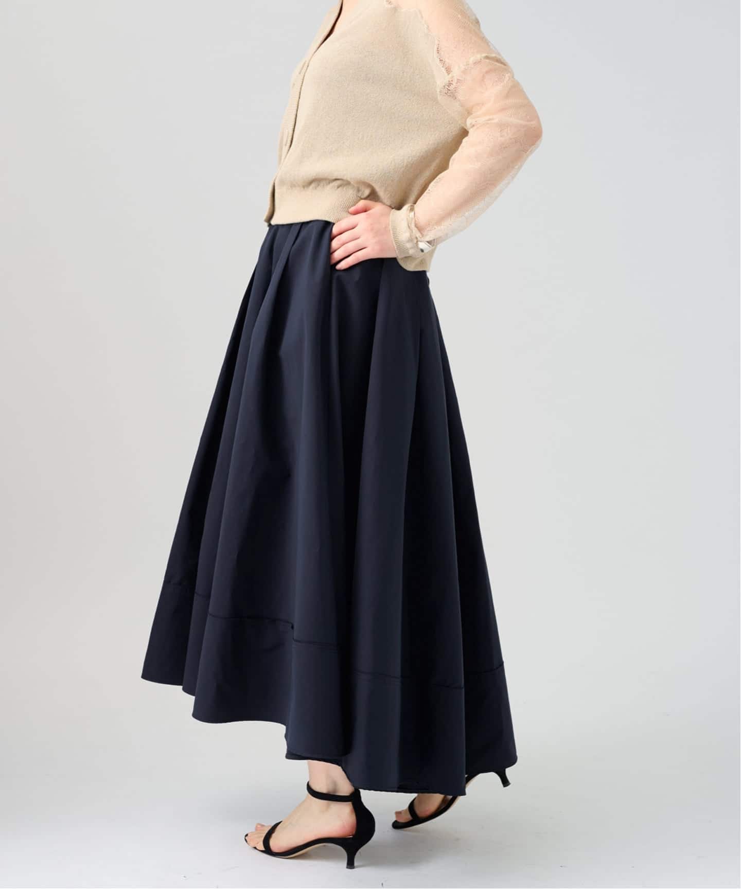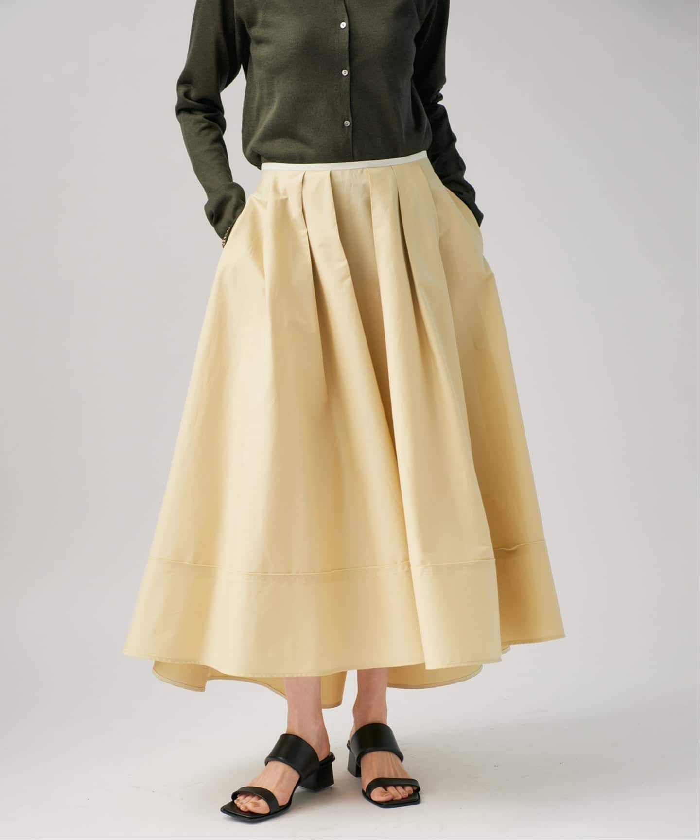 タイプライター生地ならではのハリ感が生む立体的なシルエットが印象的なタックスカート。