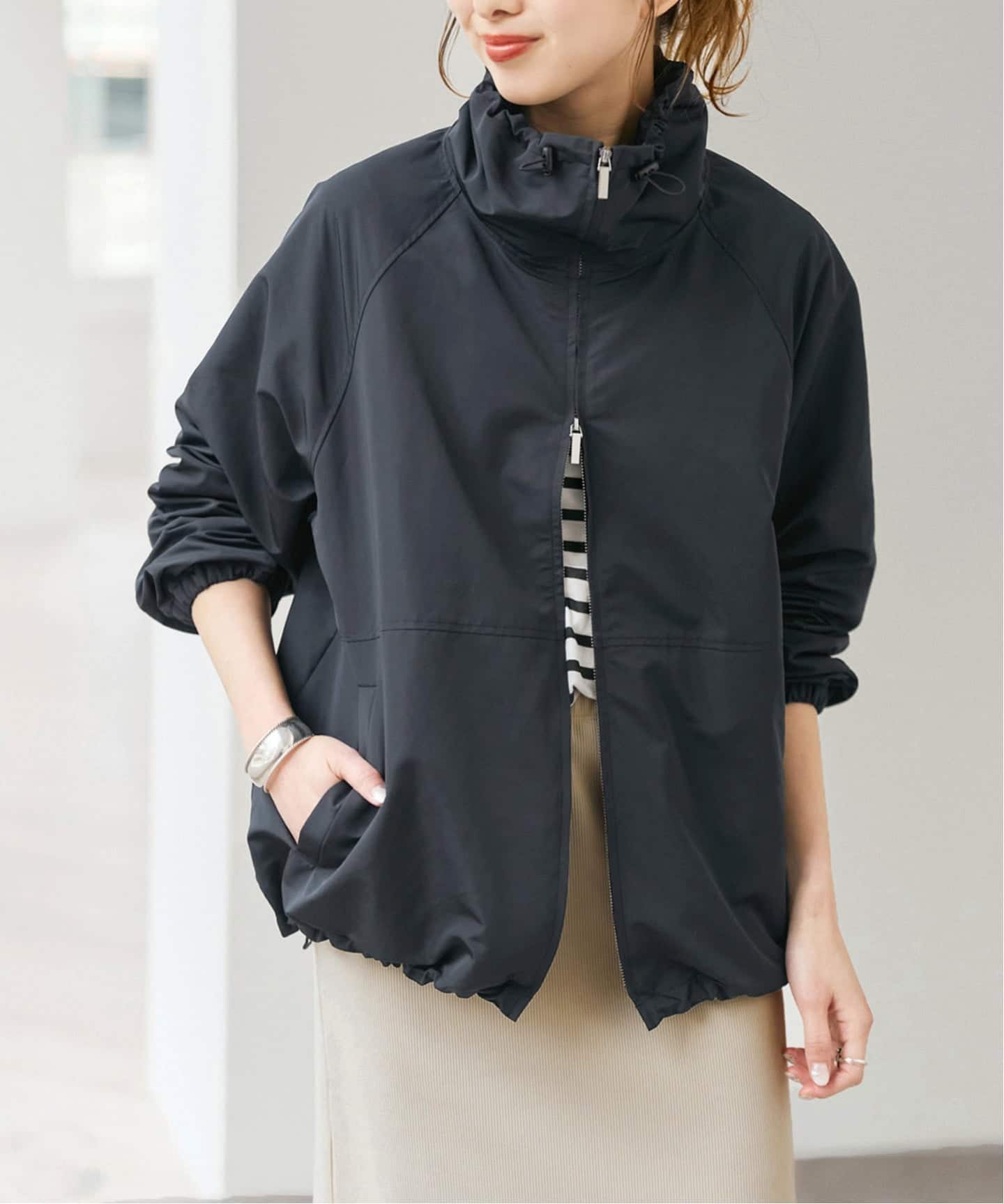 シルキータフタスタンドカラーブルゾン