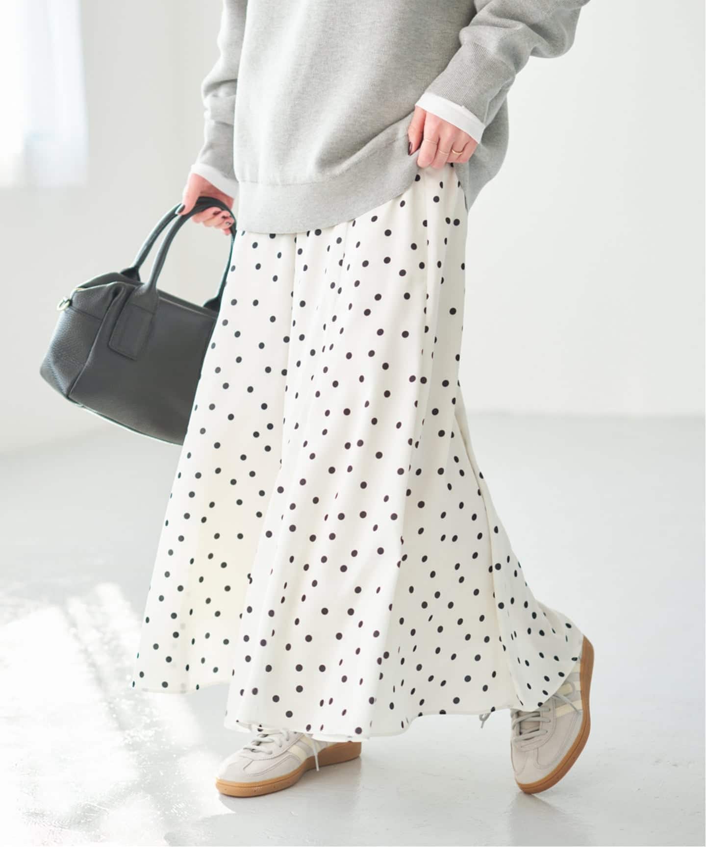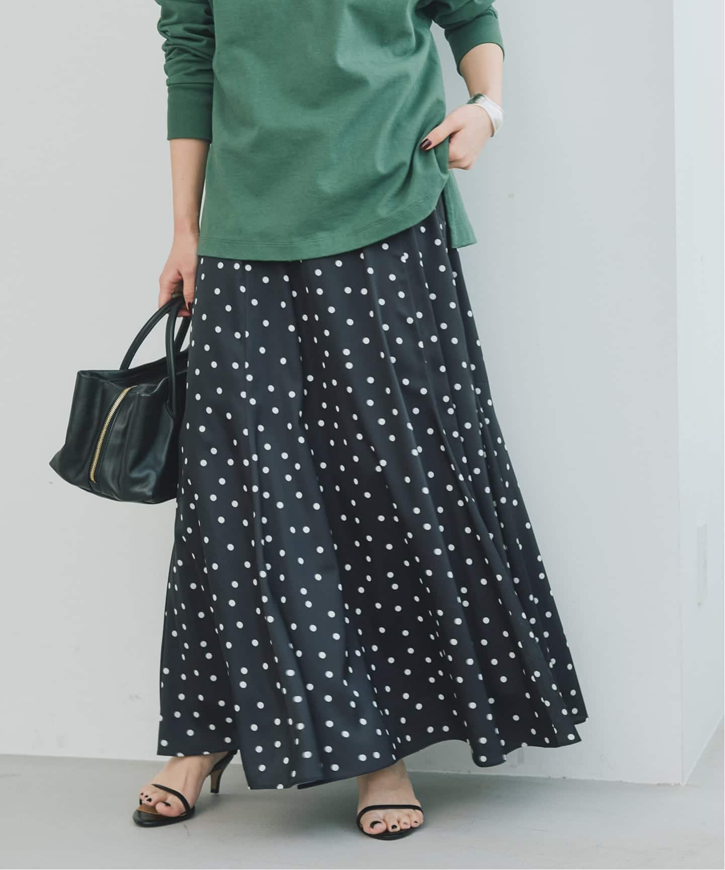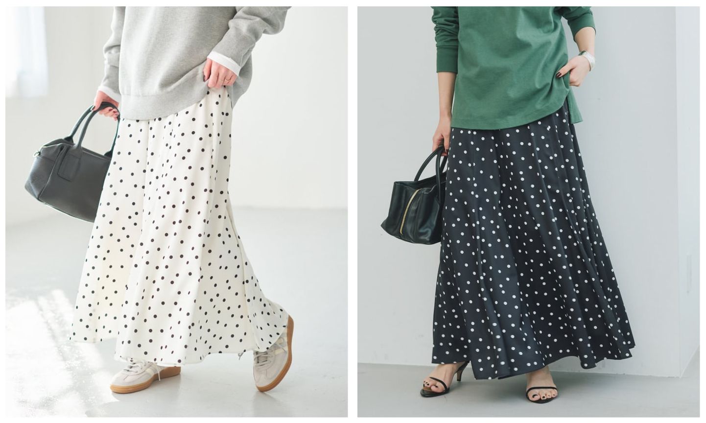 ドットサテンフレアスカート