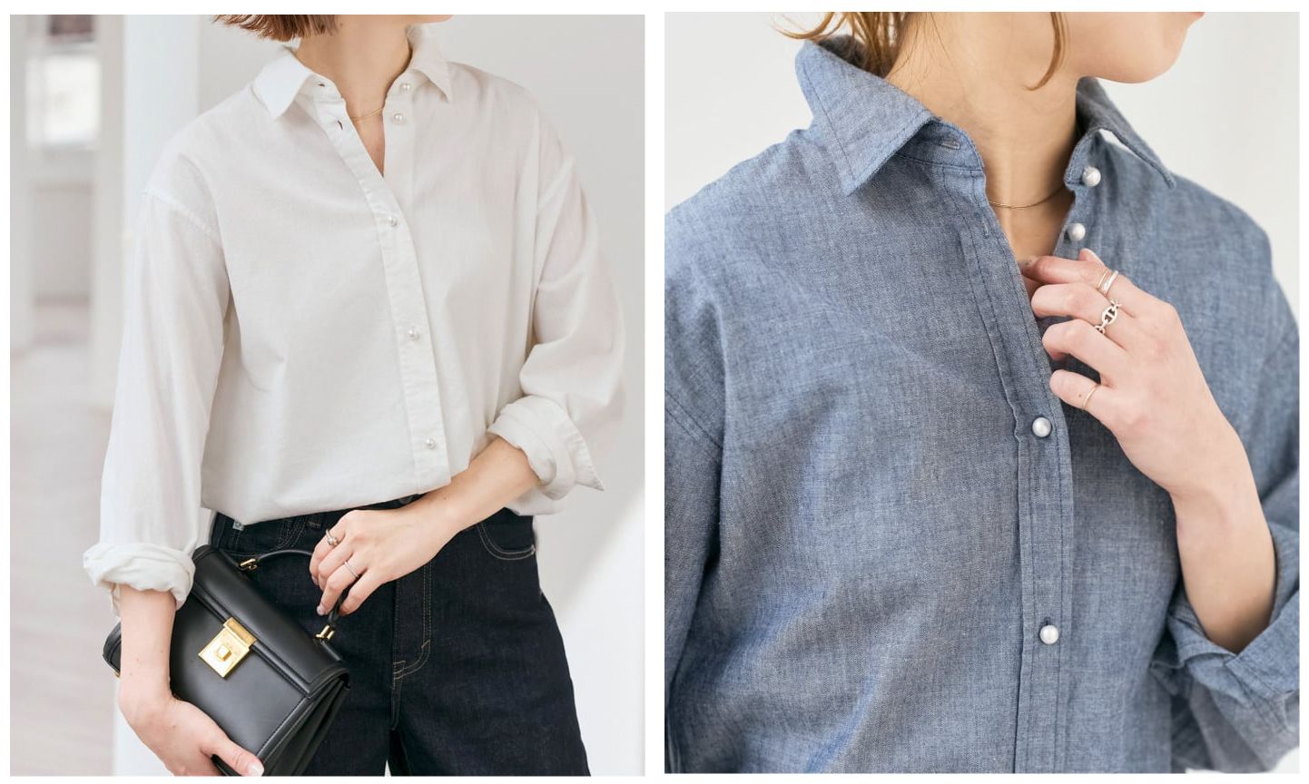 コットンパールボタンシャツ