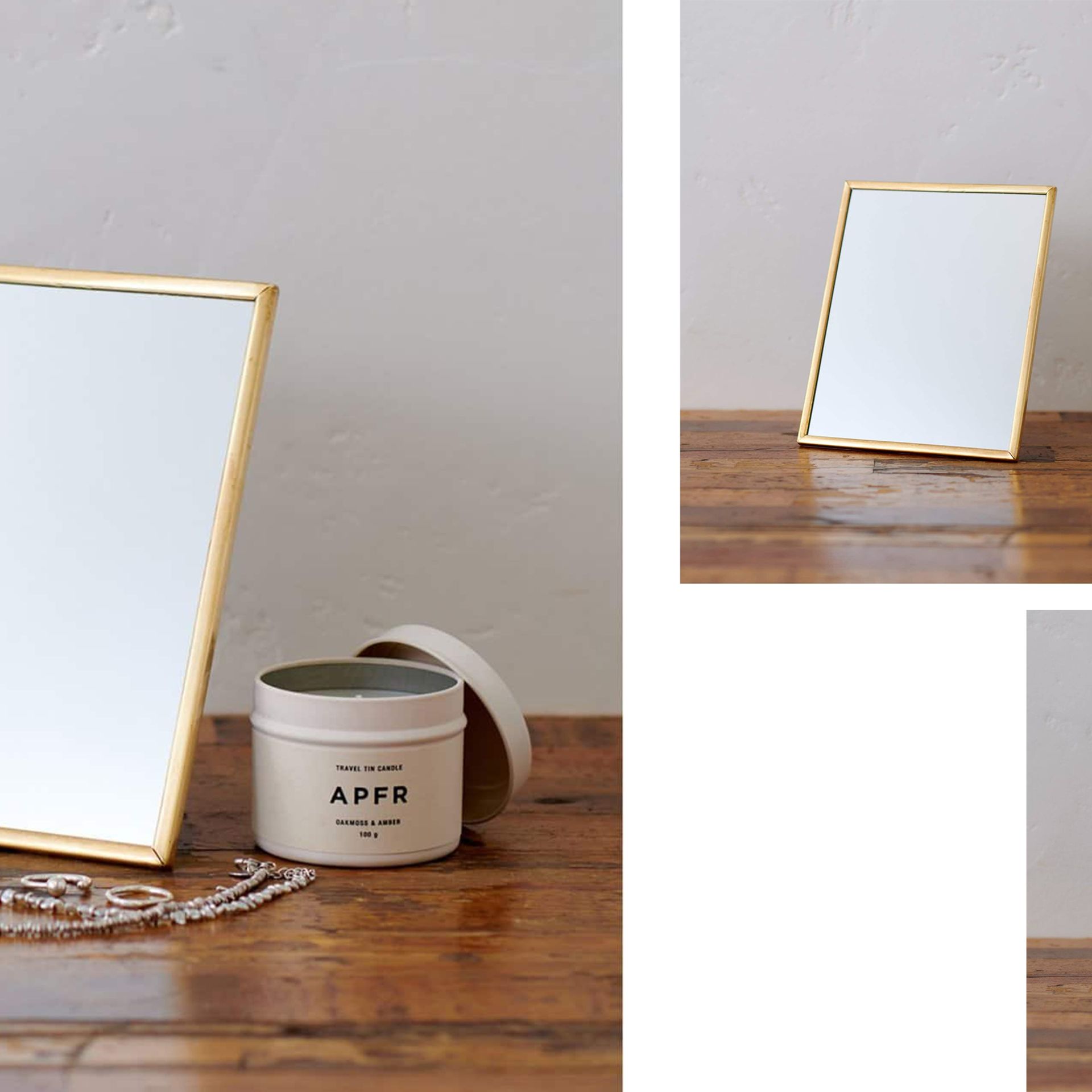 真鍮フレームのアンティークな風合いが特徴の ODIER MIRROR。