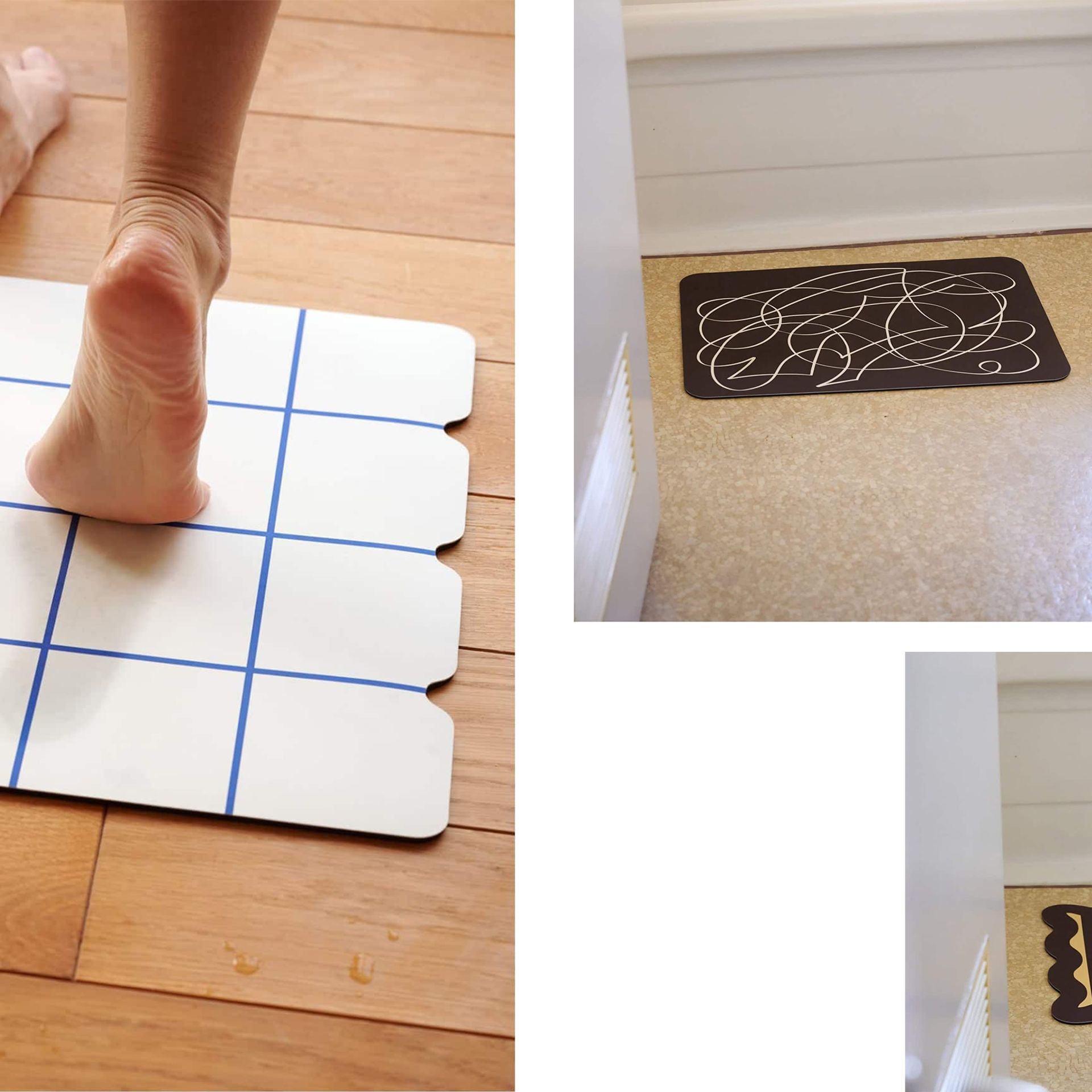 吸水性と速乾性に優れた珪藻土パウダーを配合したバスマットは、「踏んだ瞬間、さらり」と乾く快適さが魅力。