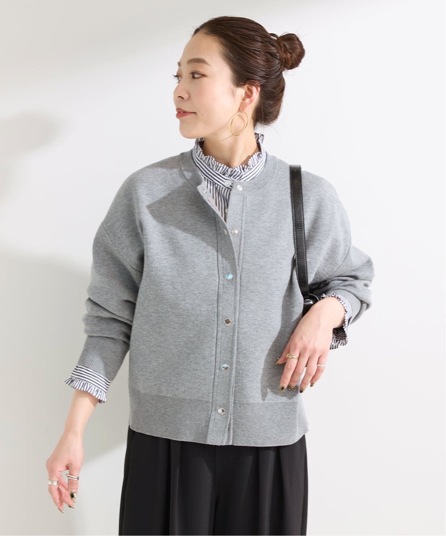 羽織るだけでコーデが完成する安心感があり、室内外の温度調整にも活躍。