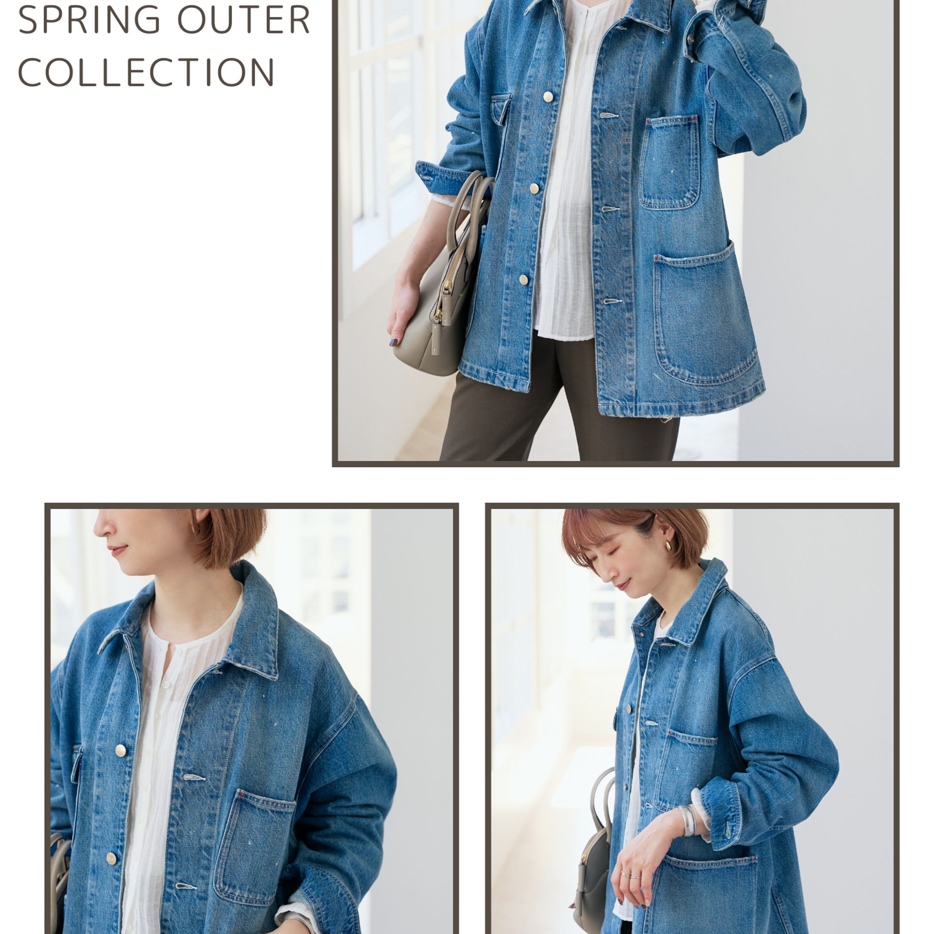 春らしいニュアンスカラーと柔らかな素材感で、デニムながら大人っぽく着こなせる一着です。