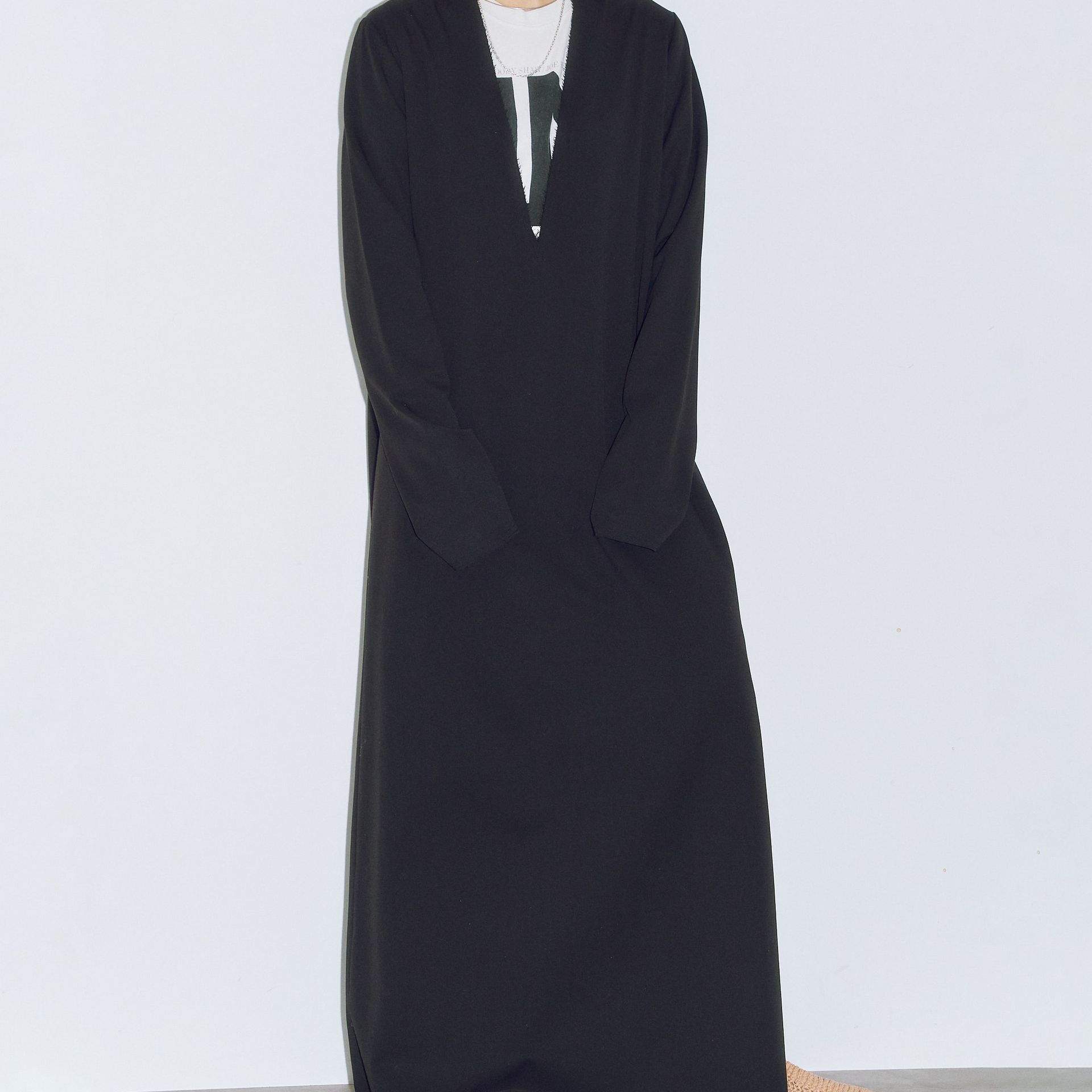 首元をすっきりと見せてくれるVネックドレス。今までも大人気だった形のドレス。