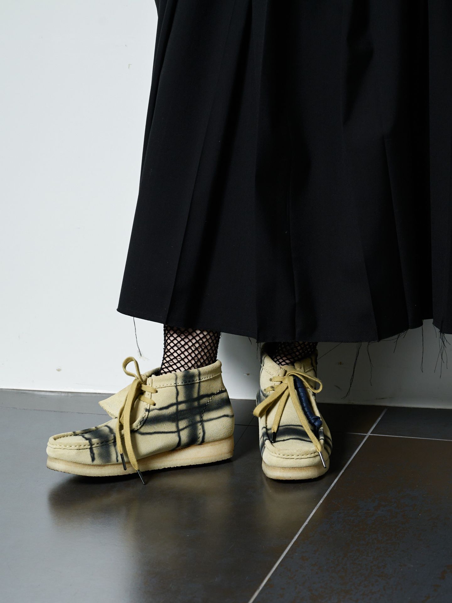 ・クラークスのカジュアルさがモードなスカートに抜け感をプラス。