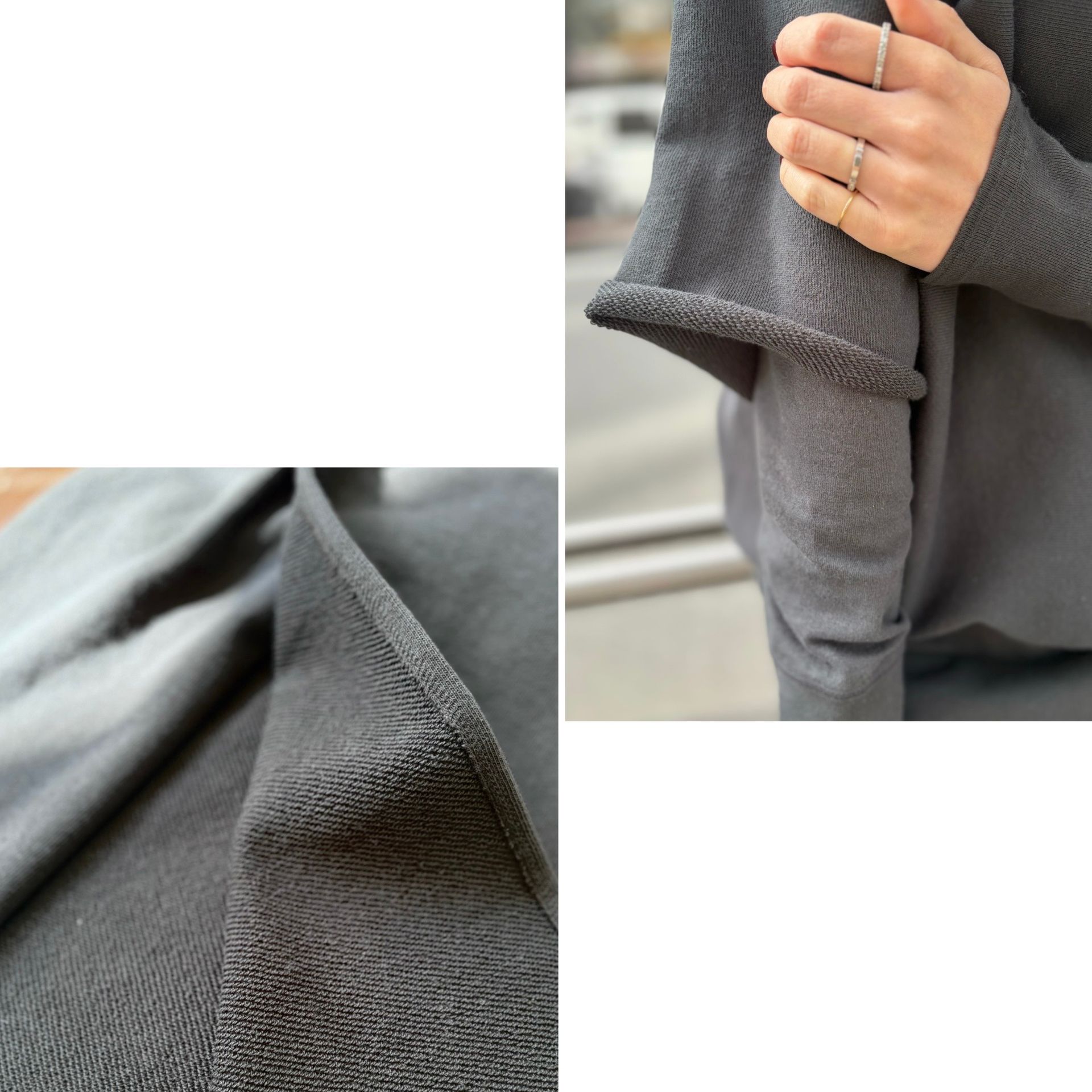 柔らかなスミクロの色味にこだわって仕上げてもらった別注スウェットトップス。ブラックほど重たくならず、ほど良く引き締めてくれる絶妙なカラーがポイントです。