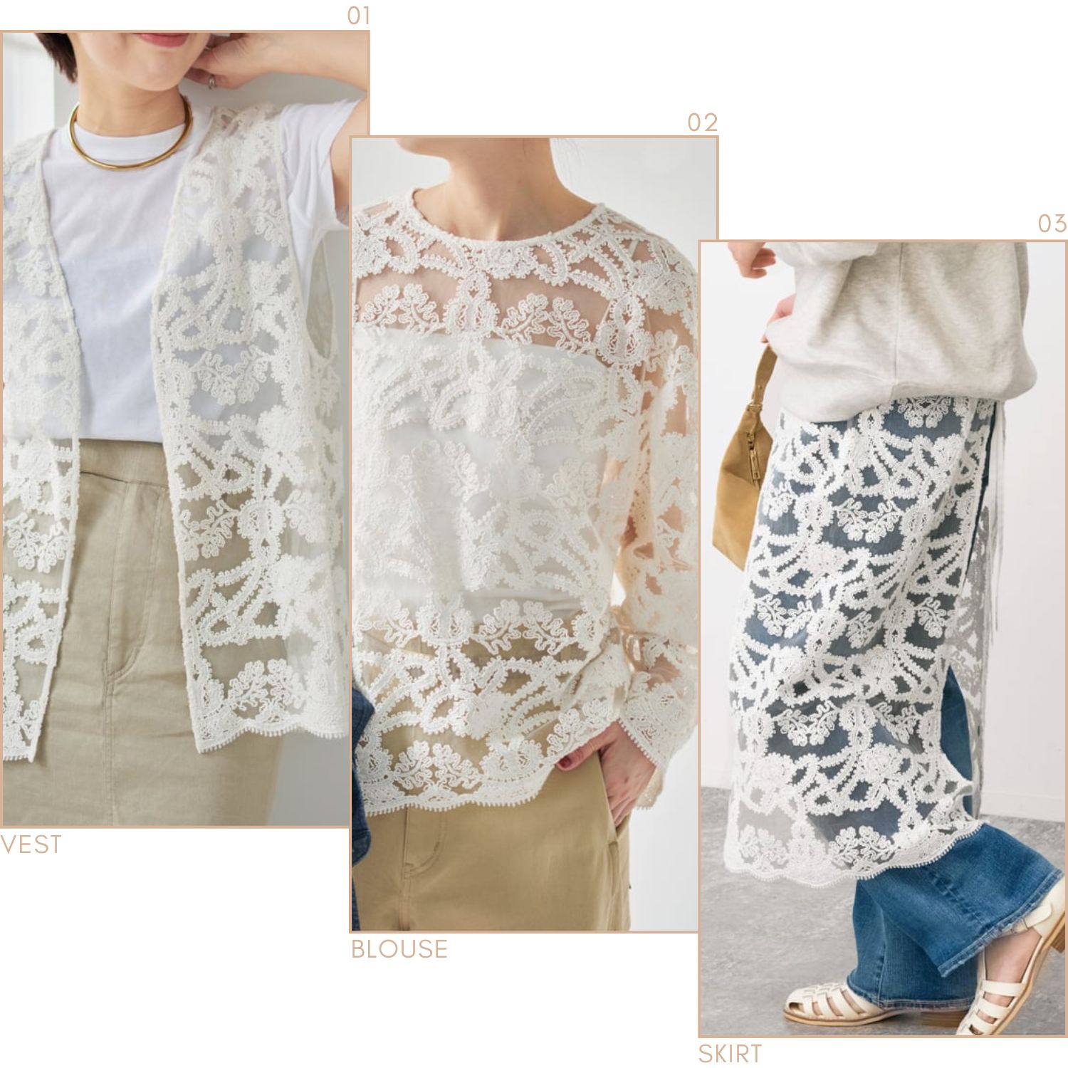 今のスタイルに自然に取り入れられる、旬のレースアイテムをラインアップでご紹介します。