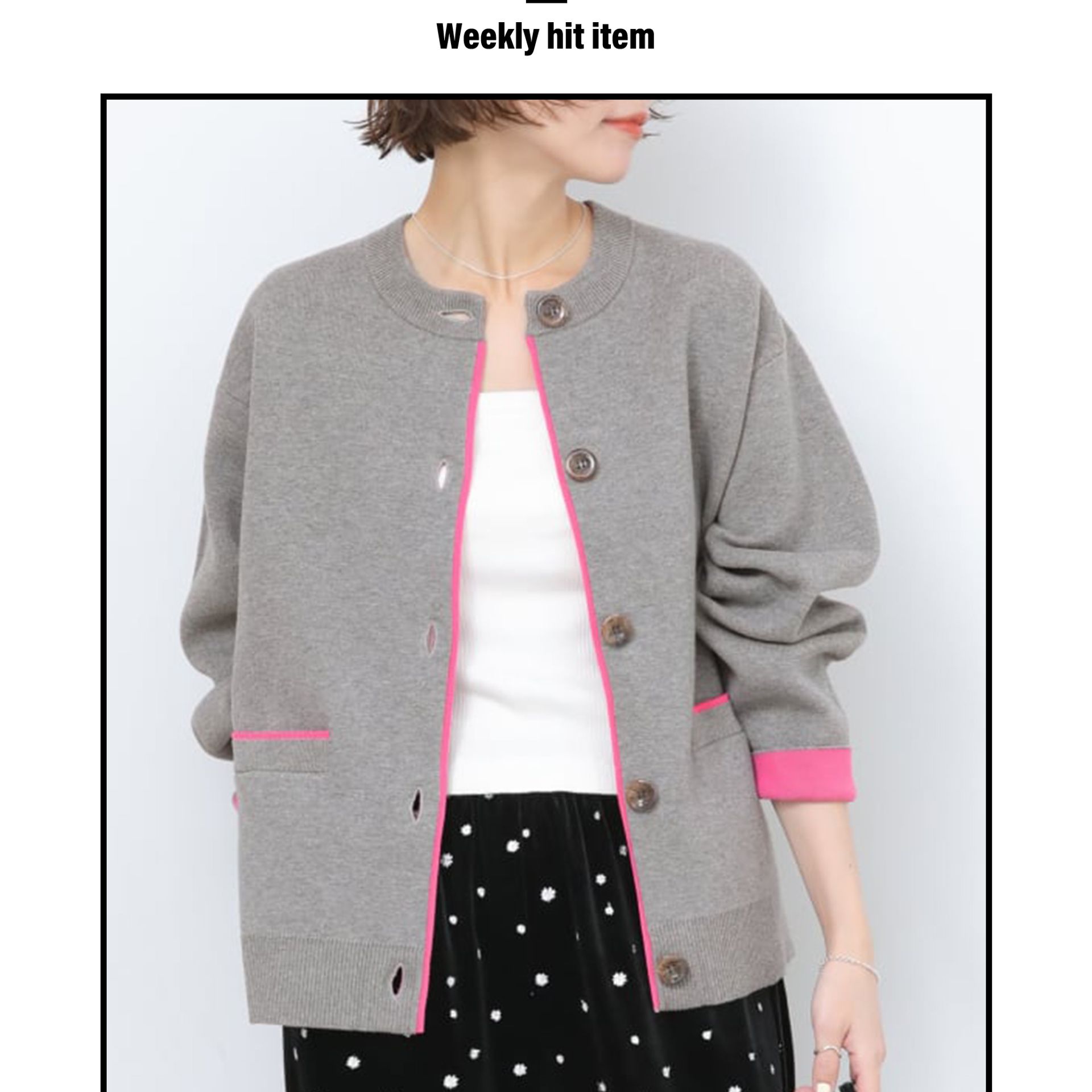 2位|ダブルニットコントラストカーディガン