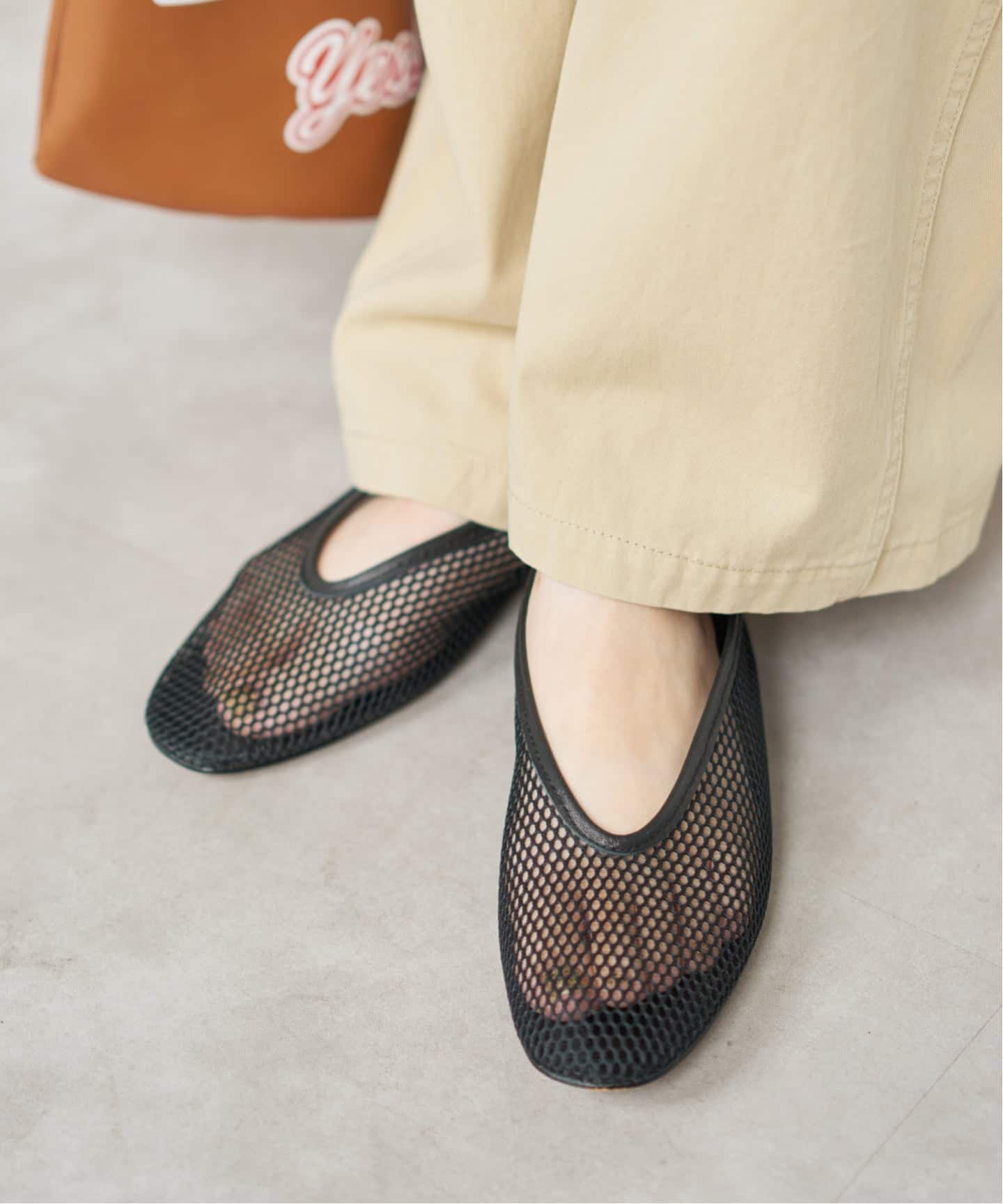 抜け感を演出するフラットシューズ。