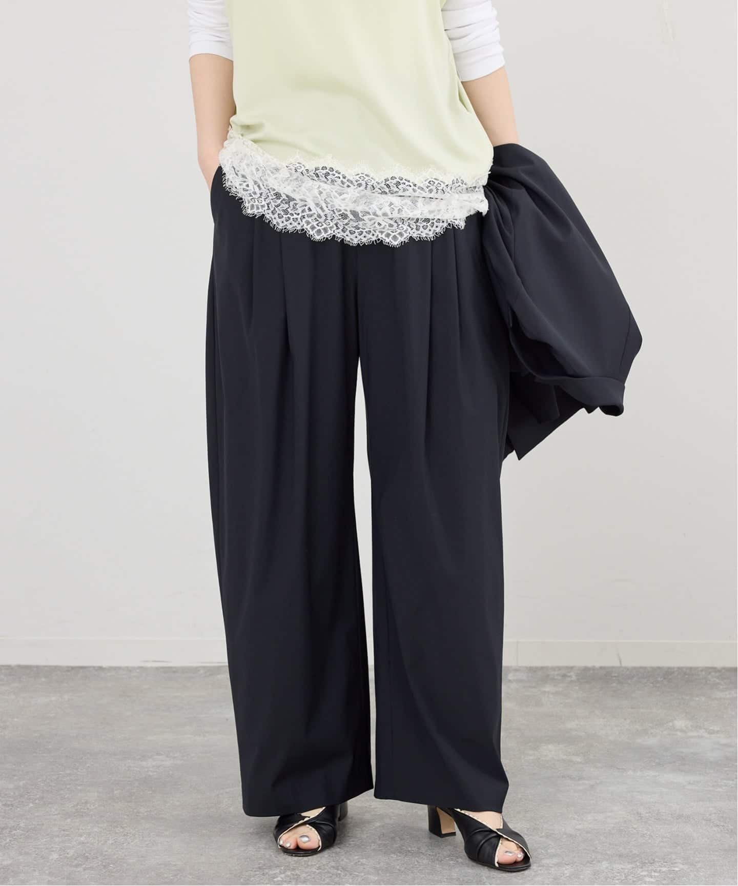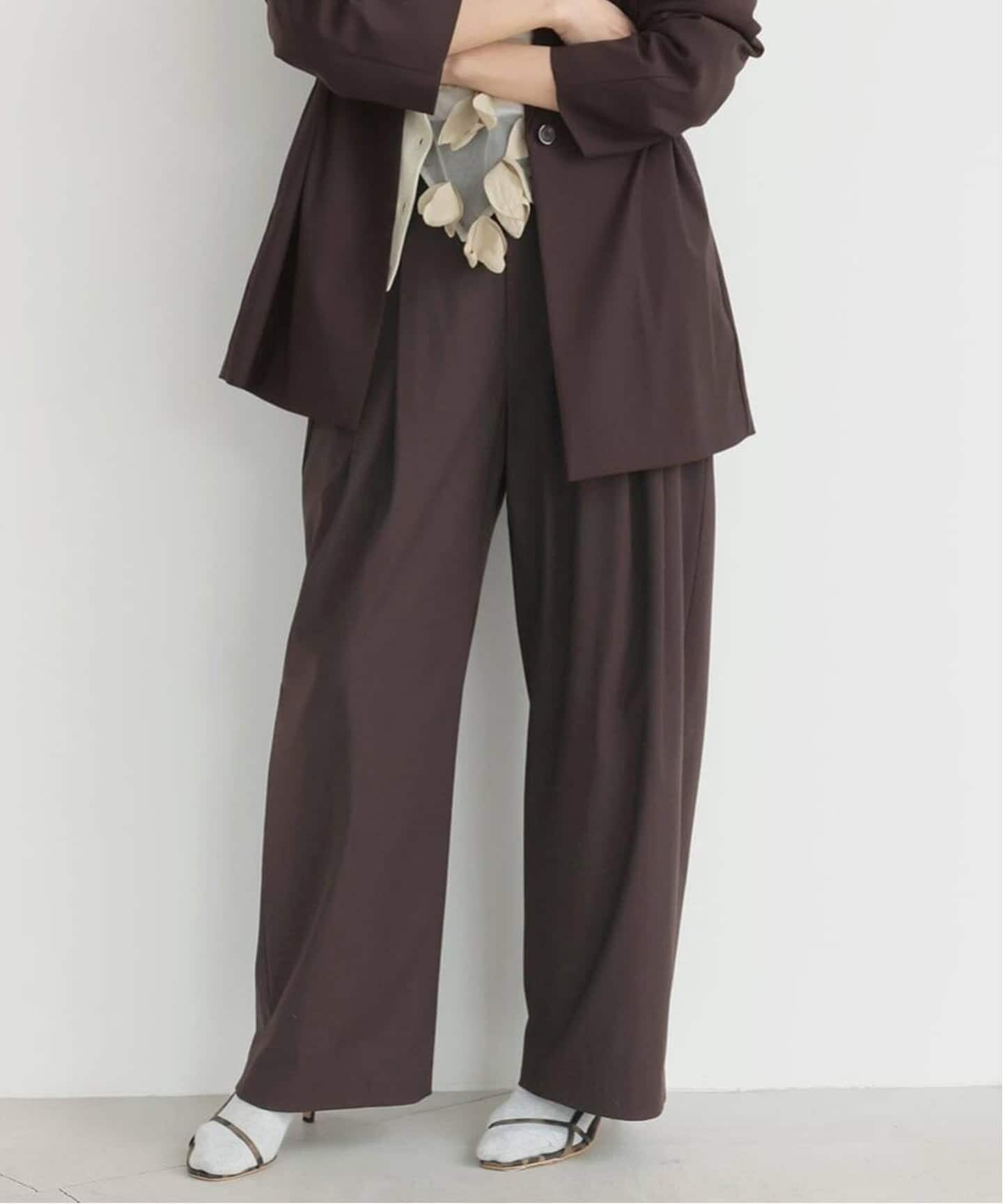 IENA定番のTA/PLジョーゼットタックワイドパンツを、今の気分に合わせてアップデート。