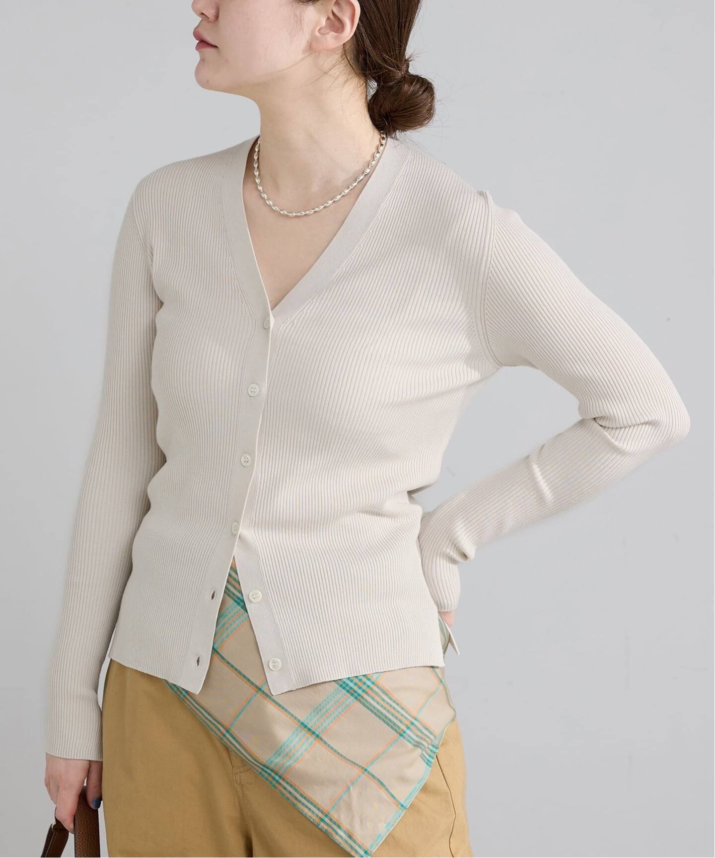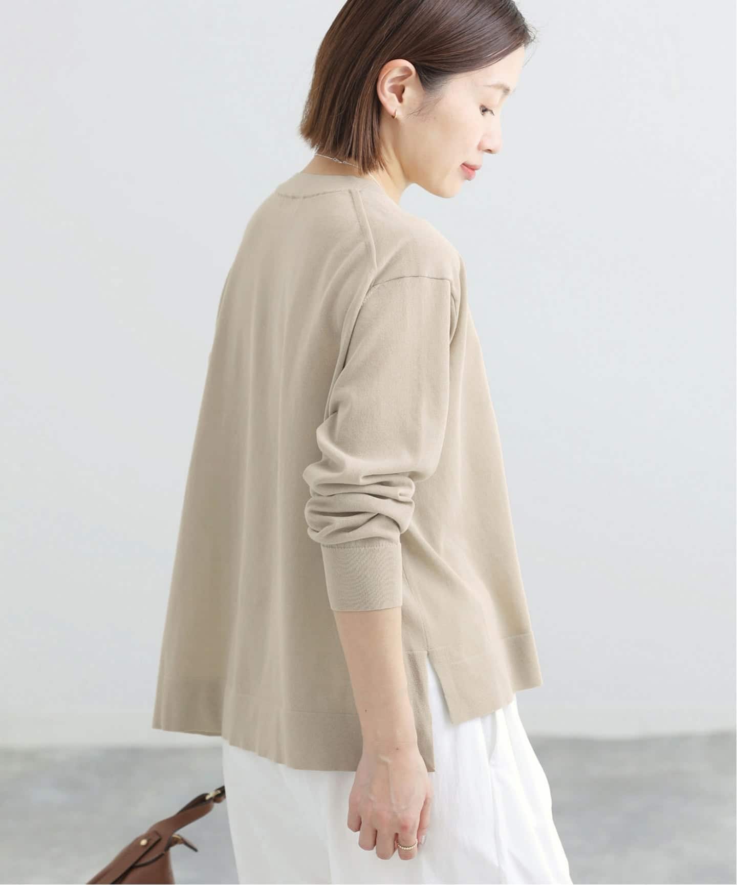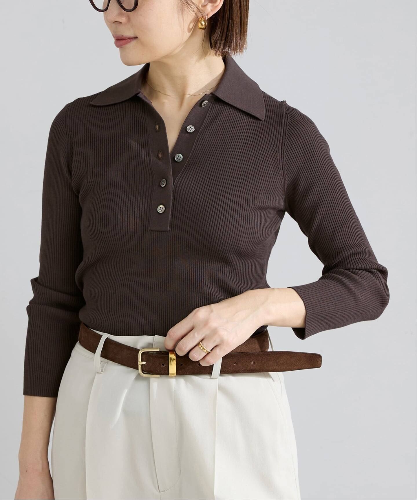 ・デイリー使いにもおすすめなきれいめニットはジャケットのインナーとしても映える一枚。